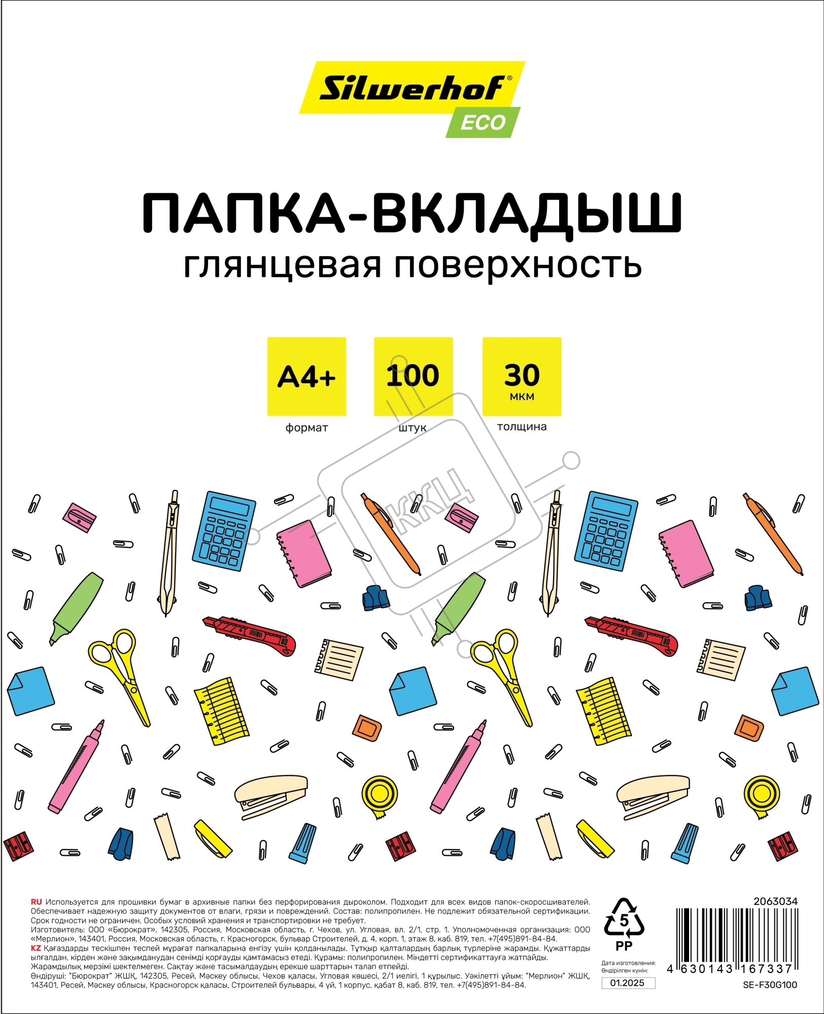 Папка-вкладыш Silwerhof Eco глянцевые А4+ 30мкм (упаковка: 100шт)