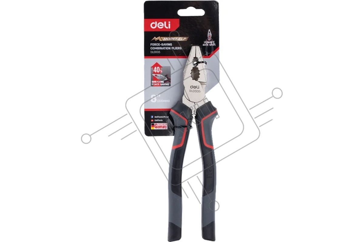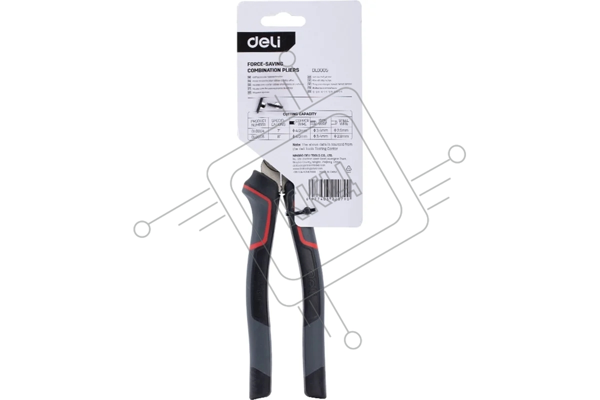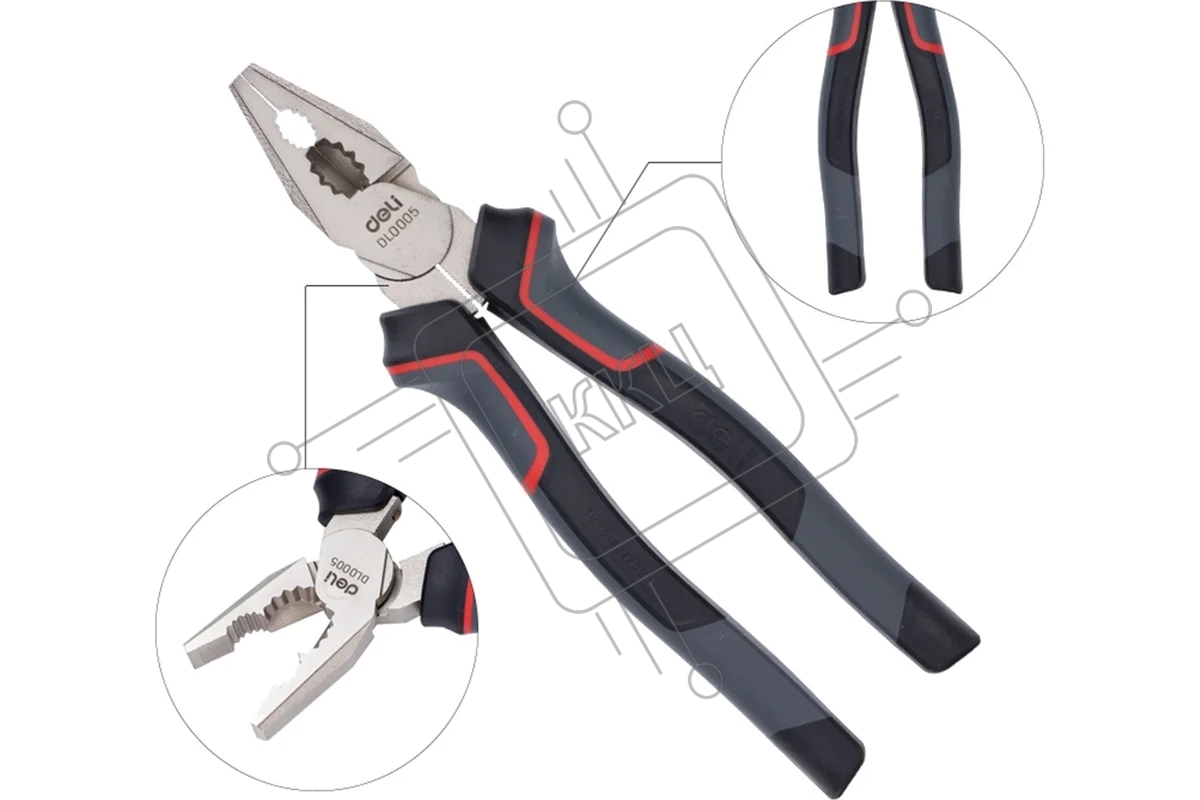 Комбинированные плоскогубцы Deli DL0005 200 мм, Cr-V, эксцентриковый шарнир, антикоррозийное покрытие, трехкомпонентная прорезиненная рукоять