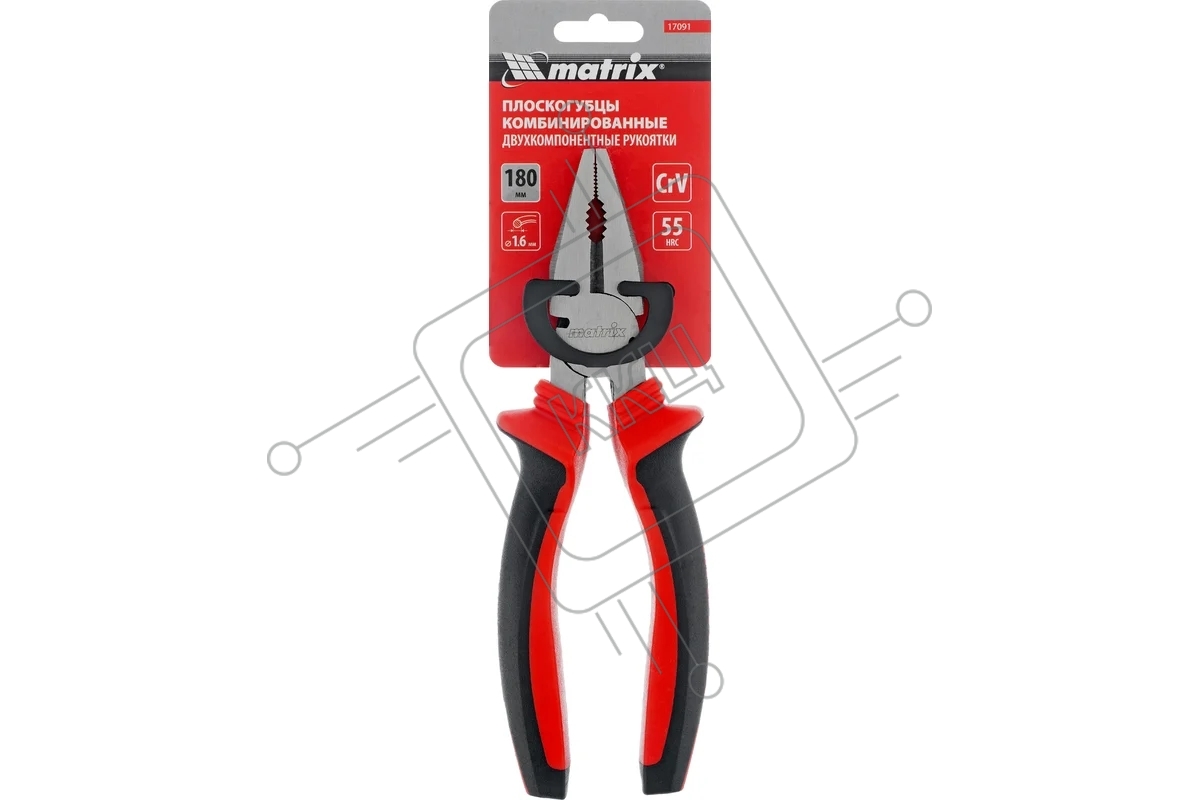 Плоскогубцы комбинированные Matrix 17091 180 мм, хром-ванадий, двухкомпонентные рукоятки