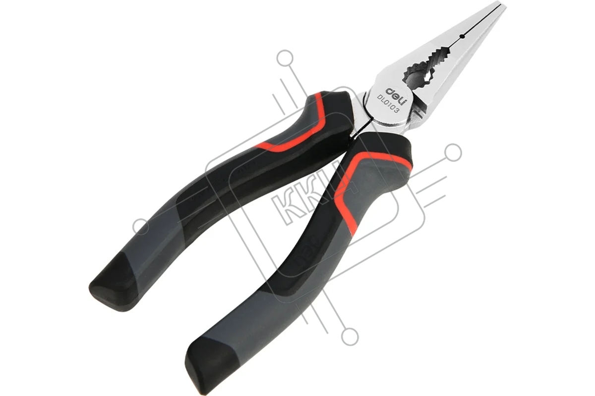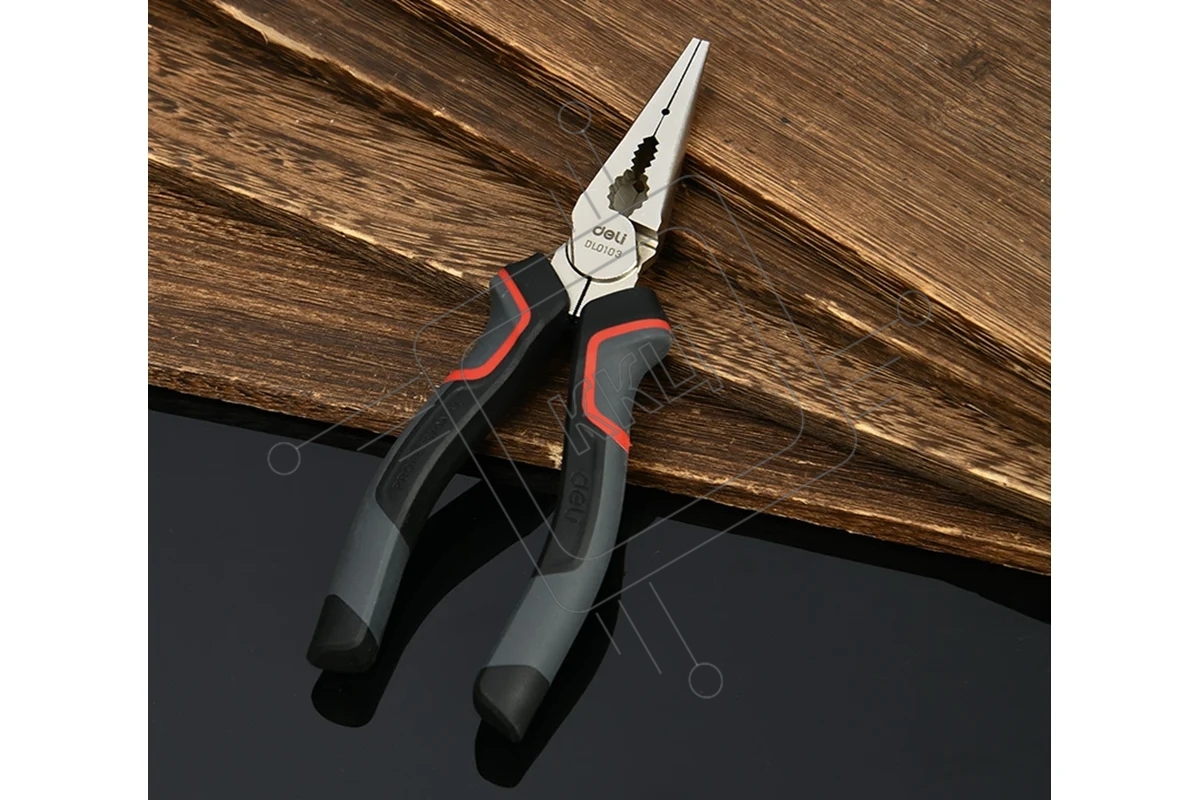 Удлиненные плоскогубцы Deli DL0103 160 мм, Cr-V, эксцентриковый шарнир, антикоррозийное покрытие, трехкомпонентная прорезиненная рукоять
