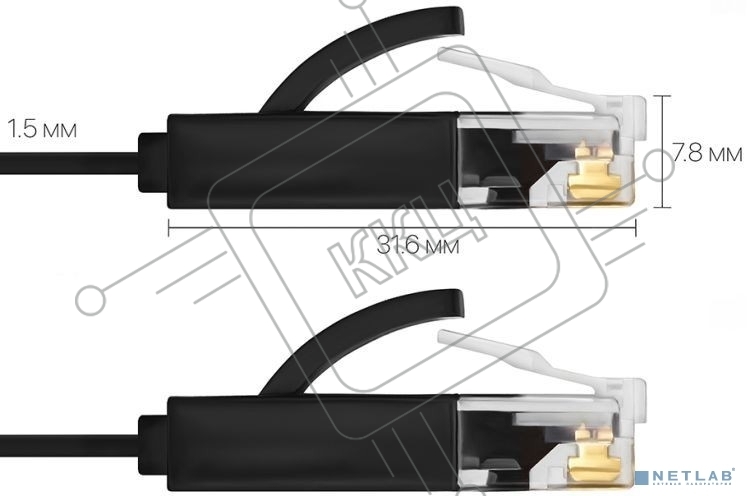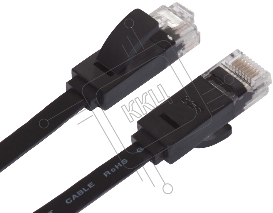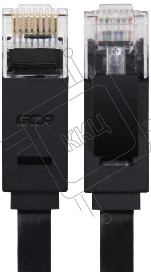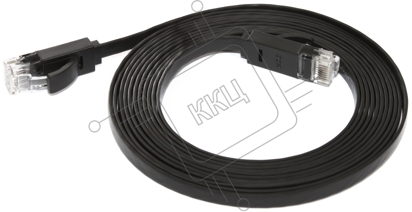 Патч-корд Greenconnect плоский прямой PROF 15.0m UTP медь, кат.6, черный, позолоченные контакты, 30 AWG, Premium ethernet high speed 10 Gbит/с, RJ45, T568B (GCR-LNC616-15.0m)