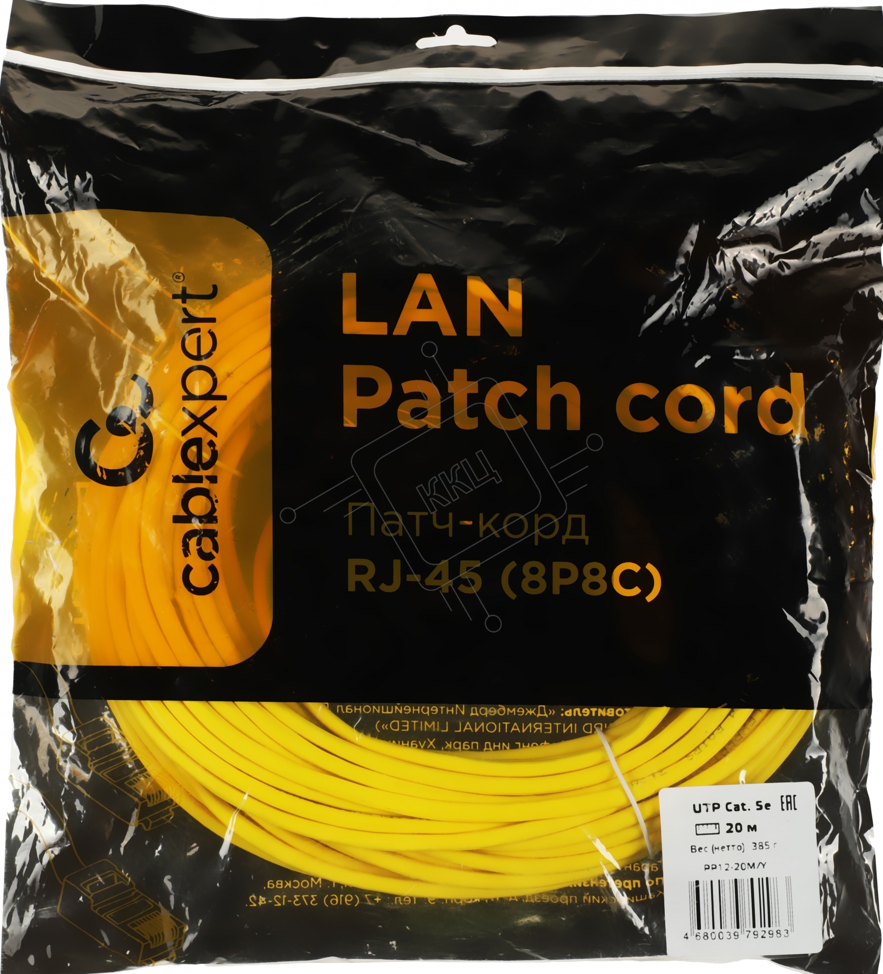 Патч-корд UTP Cablexpert PP12-20M/Y кат.5e, 20м, литой, многожильный, желтый
