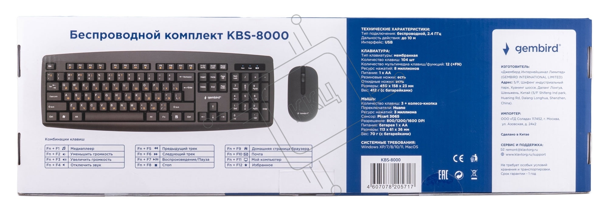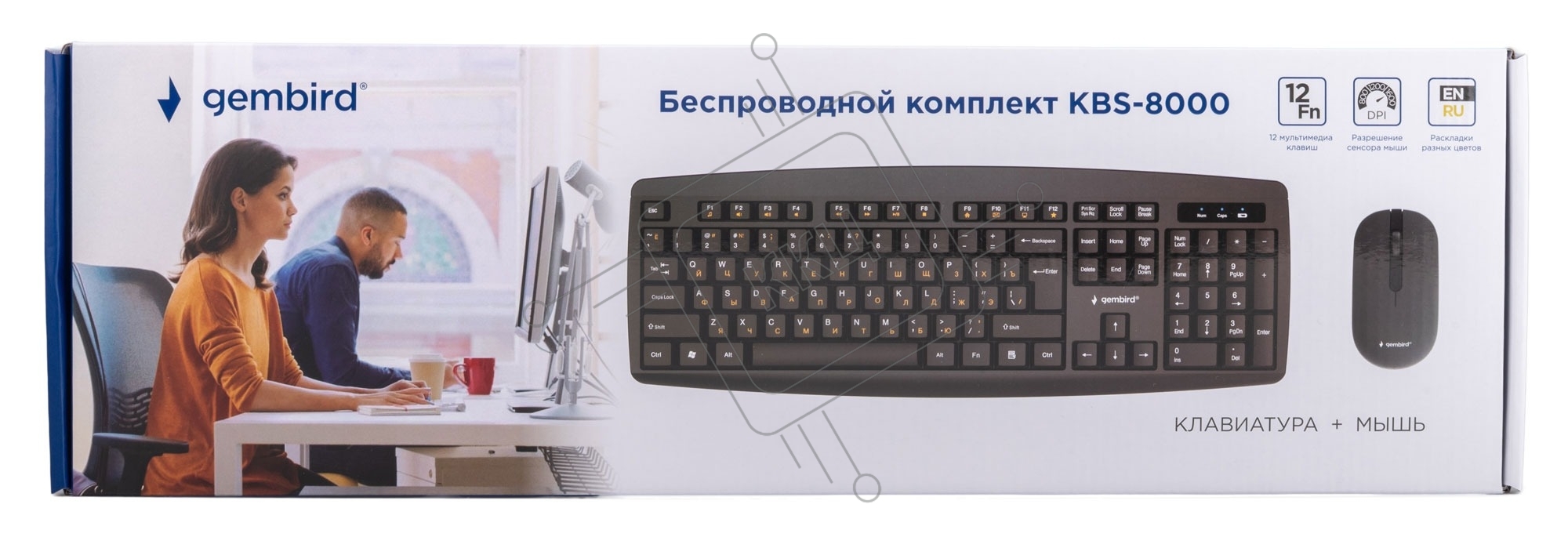 Комплект клавиатура + мышь Gembird KBS-8000 черный USB беспров. 2.4ГГц, 10м, 1600DPI, мини-приемник