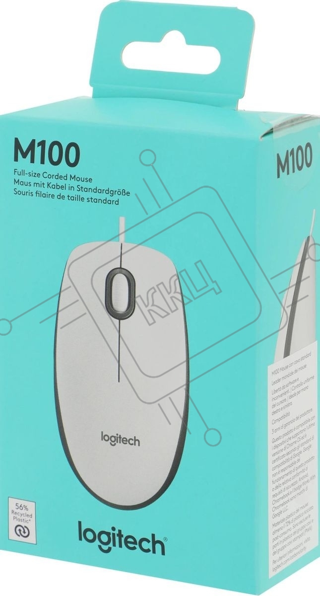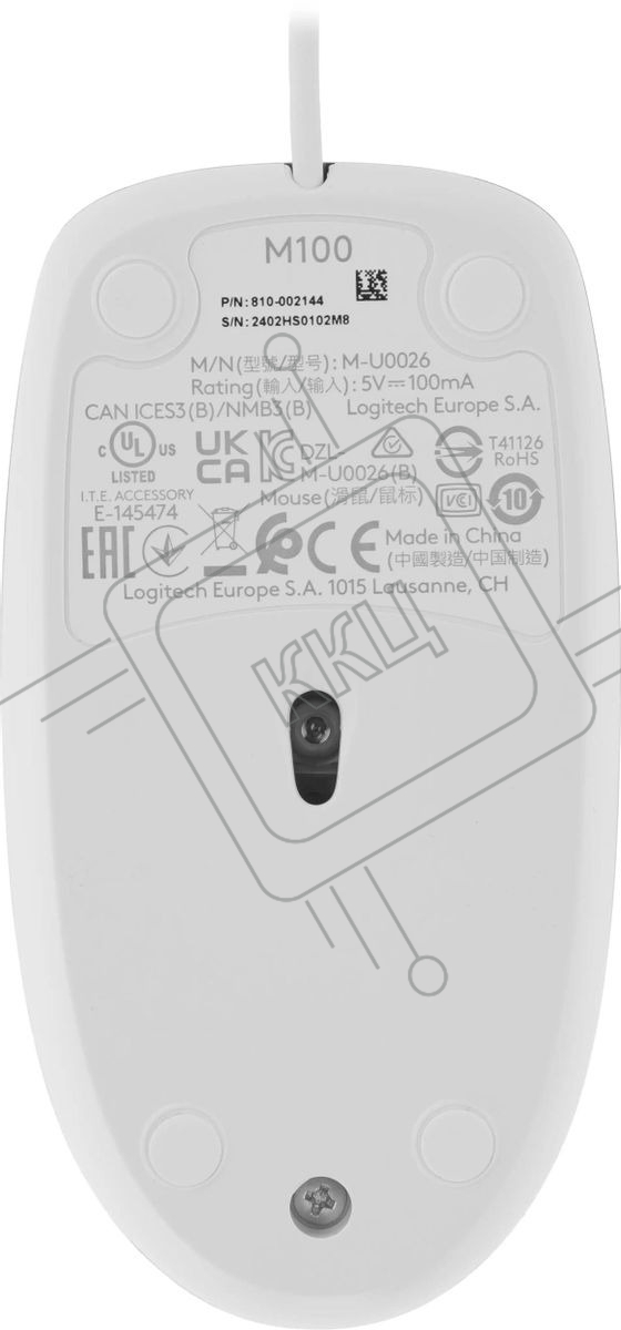 Мышь проводная Logitech M100 белый, 1000 dpi, USB, кнопки - 3