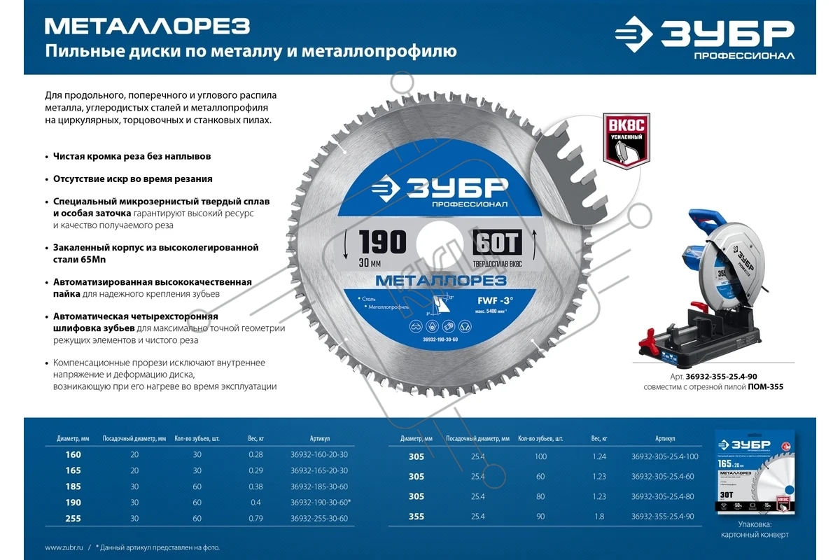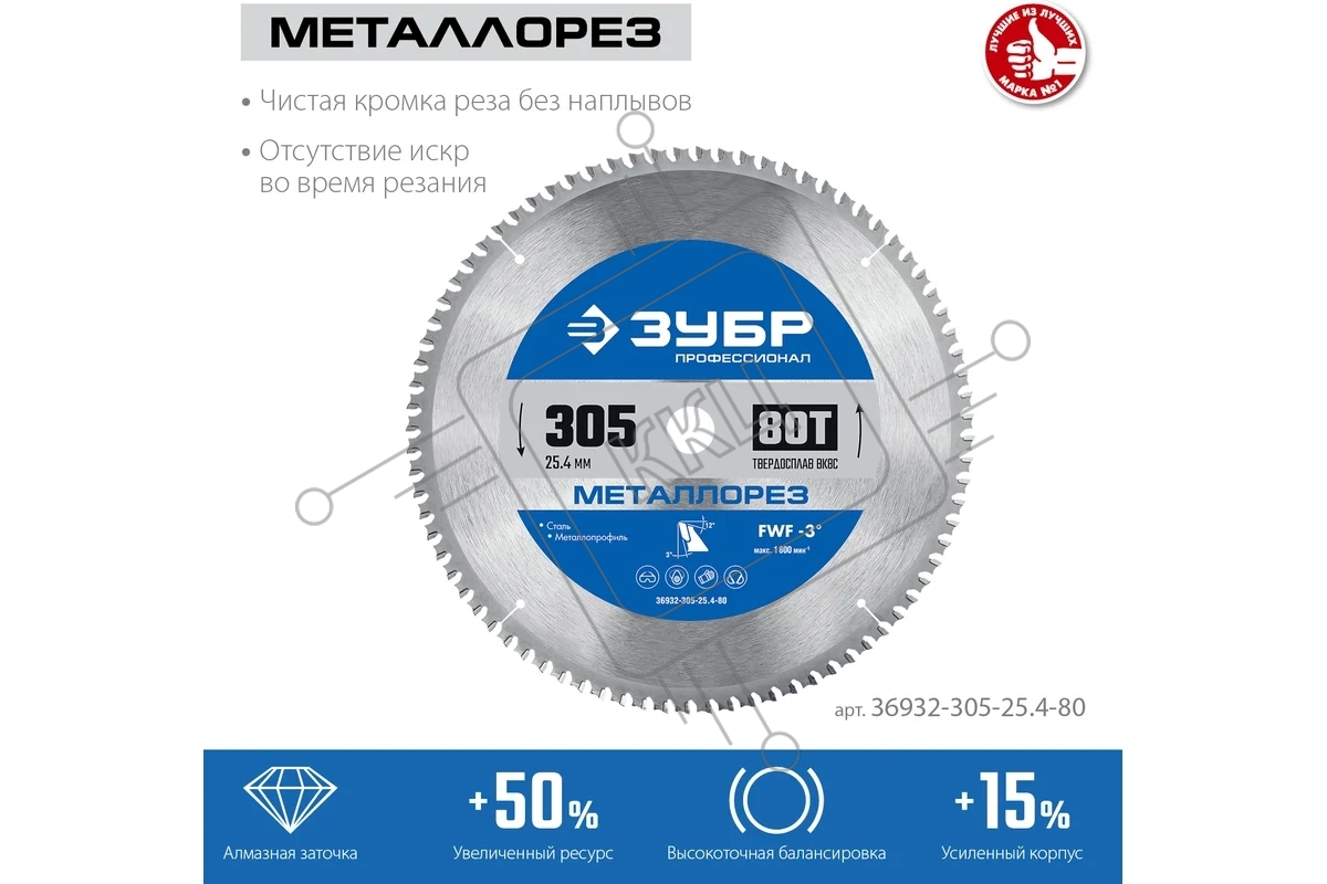 Диск ЗУБР Металлорез 305х25.4мм 80Т, диск пильный по металлу и металлопрофилю