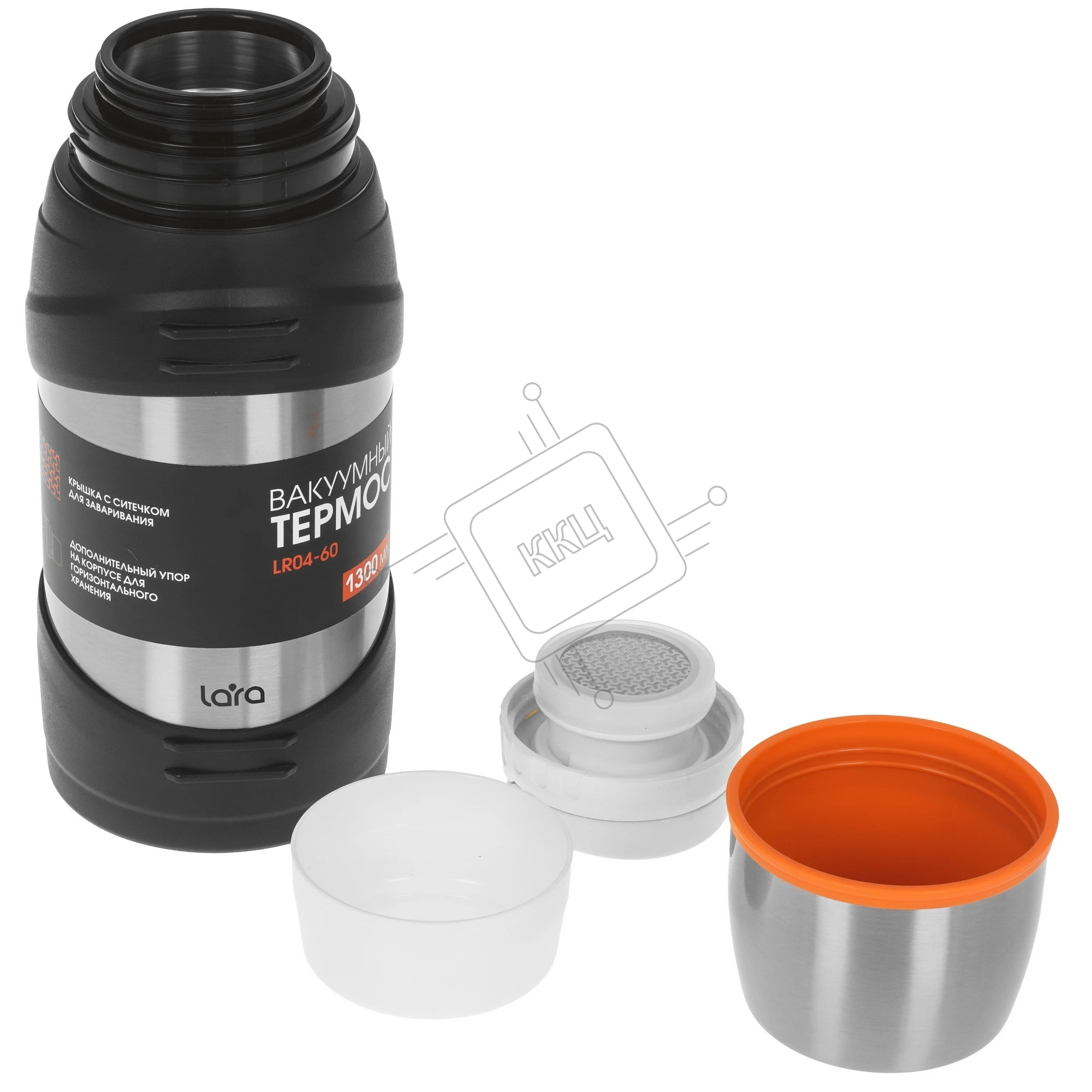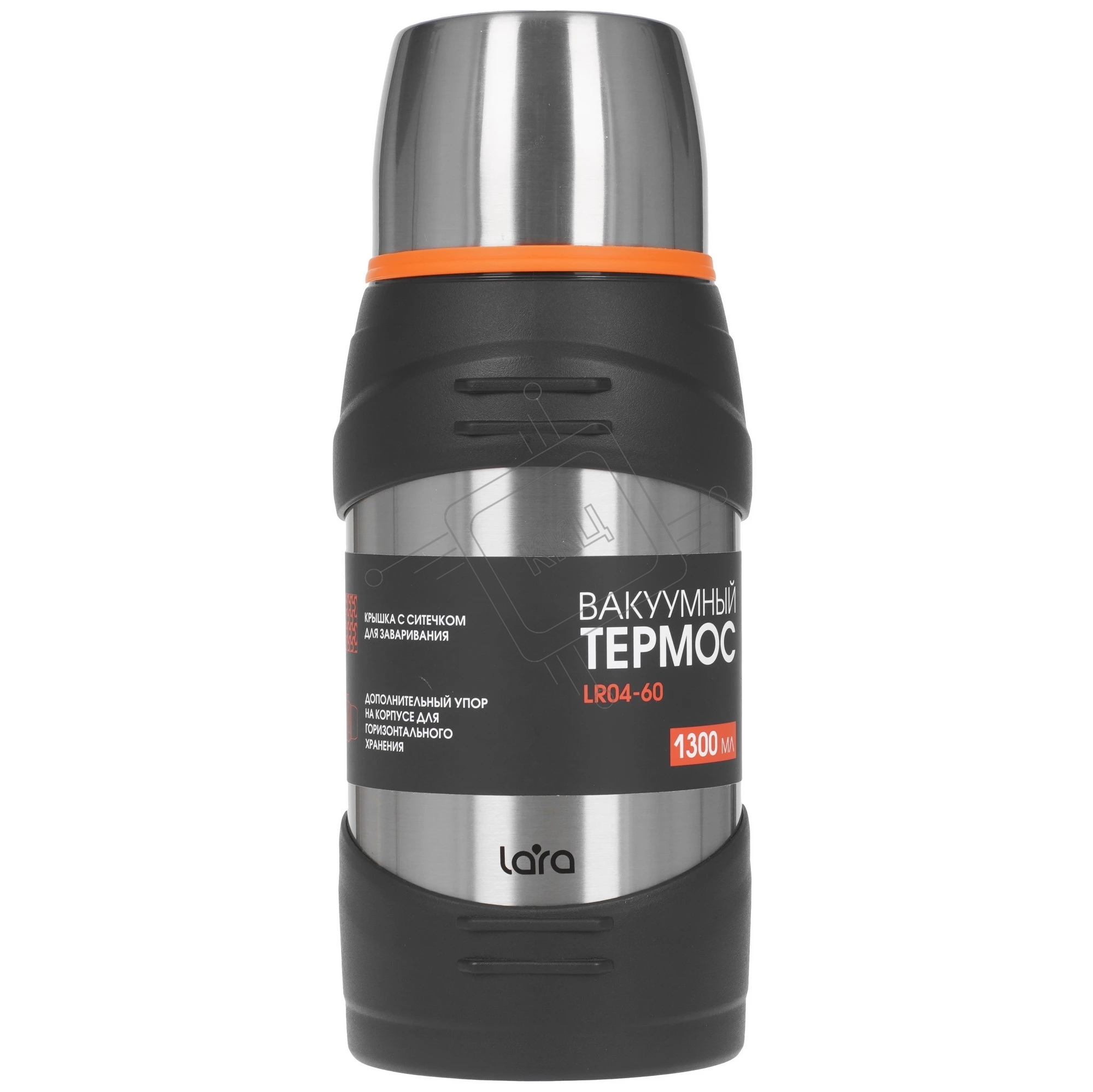 Термос LARA LR04-60 1,3 л, нержавеющая сталь, пищевой нейлон, пластмасса, силикон