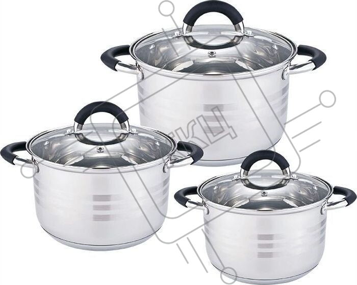 Набор посуды KELLI KL-4206 6 пред.(Кастрюля с жаропрочной стекл. крышкой 2.1 л. Кастрюля с жаропрочной стекл. крышкой 3 л. Кастрюля с жаропрочной стекл. крышкой 4 л. Высококачественная нерж. сталь 18/10. 5-ти слойное капсульное дно.)