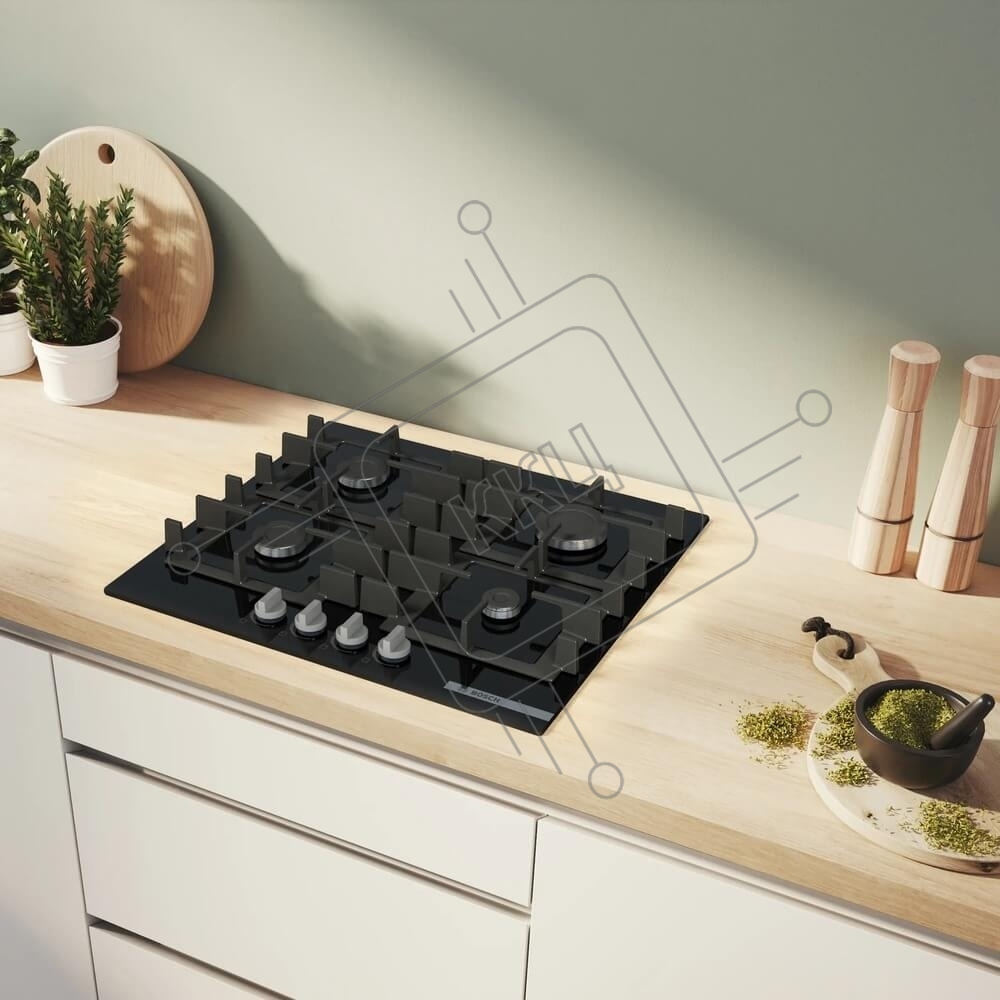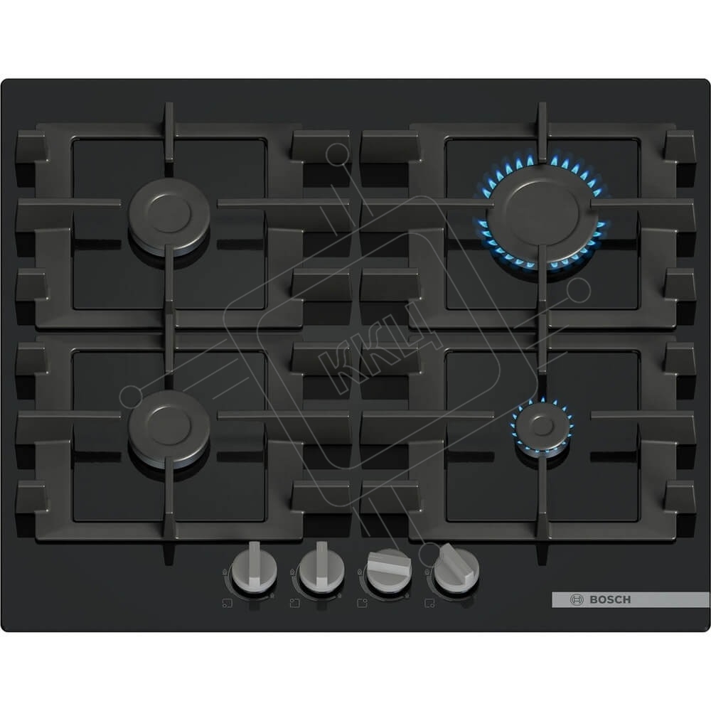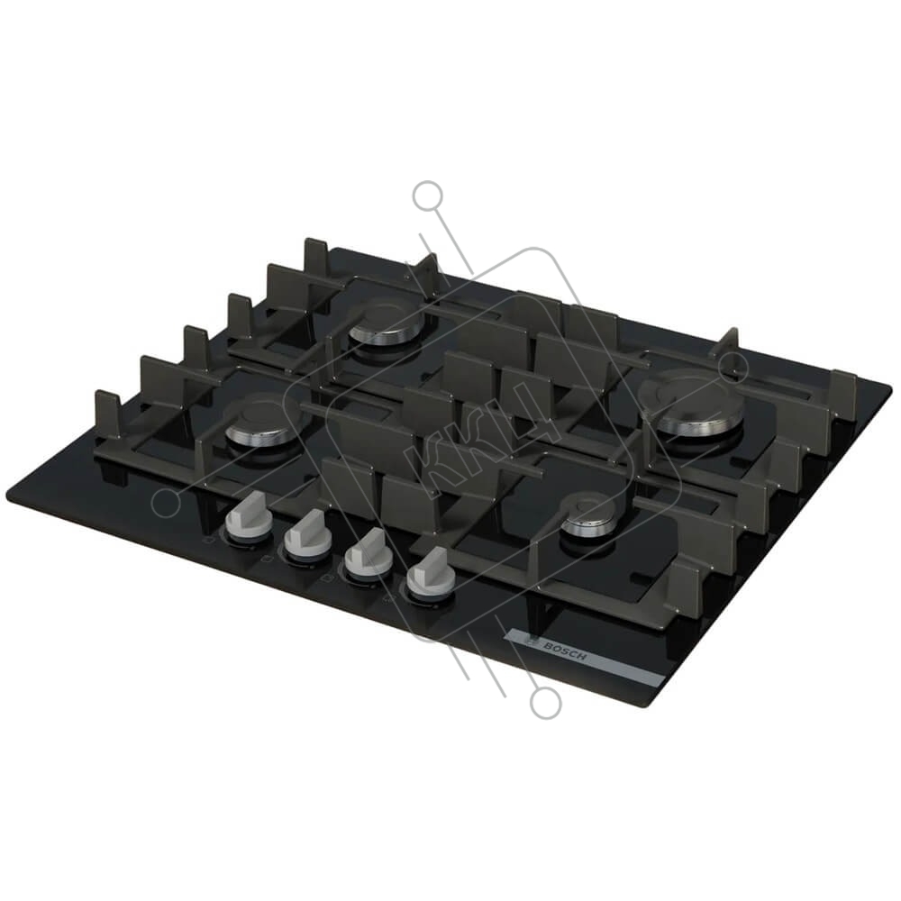 Поверхность газовая Bosch PNP6B6K40 Газ, 4.5х59x52 см, закаленное стекло, 4 конфорки, газ-контроль, автоподжиг, черный