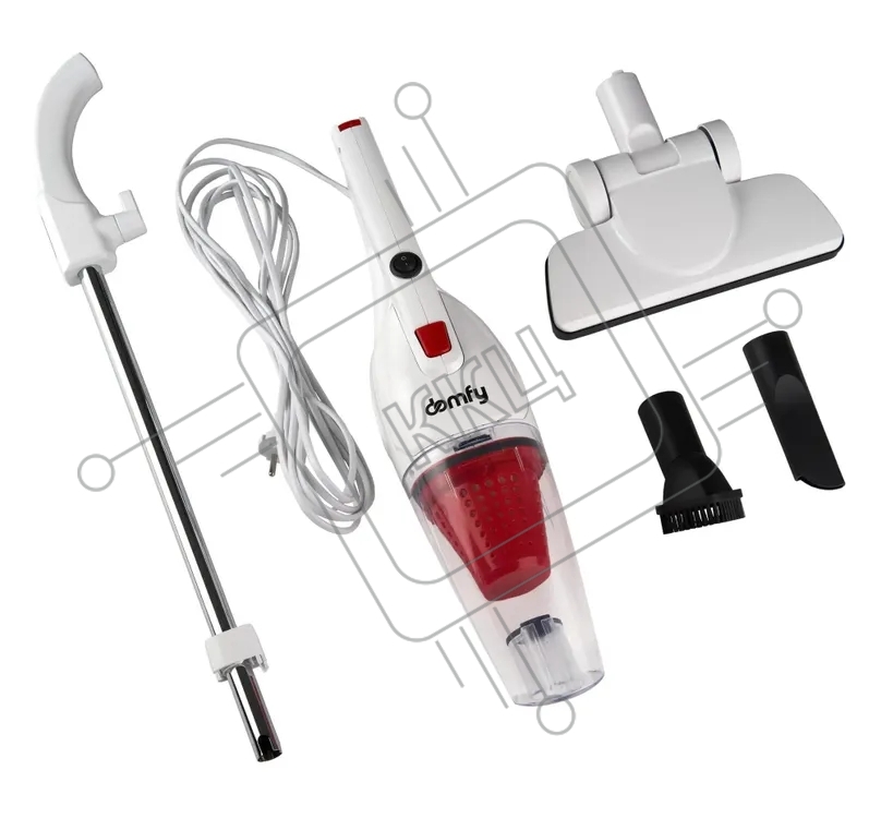 Пылесос вертикальный Domfy DSC-VC301 белый/красный, питание от сети, 120 Вт, уборка сухая, пылесборник 1.2 л
