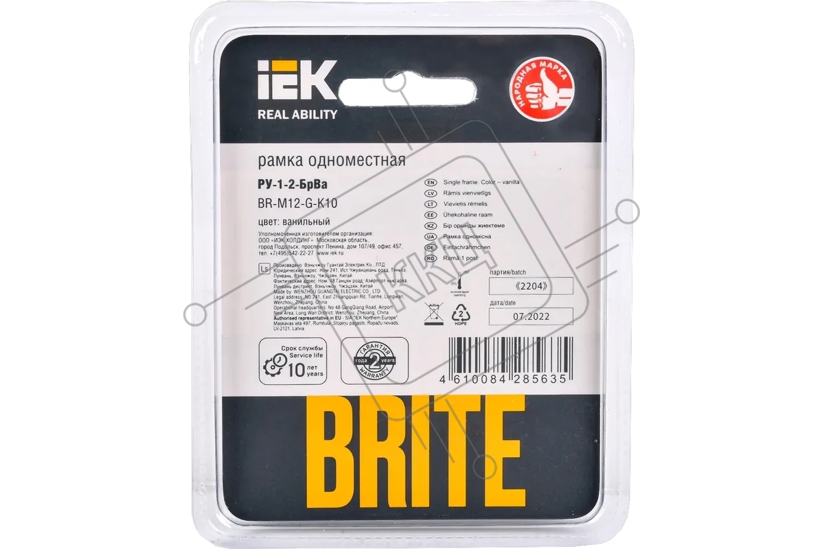 Рамка 1-мест. IEK BRITE РУ-1-2-БрВа стекло ванильный