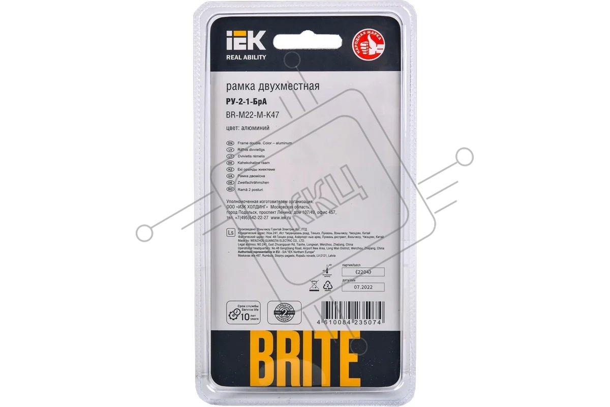 Рамка 2 -местная IEK BRITE РУ-2-1-БрА металл алюминий