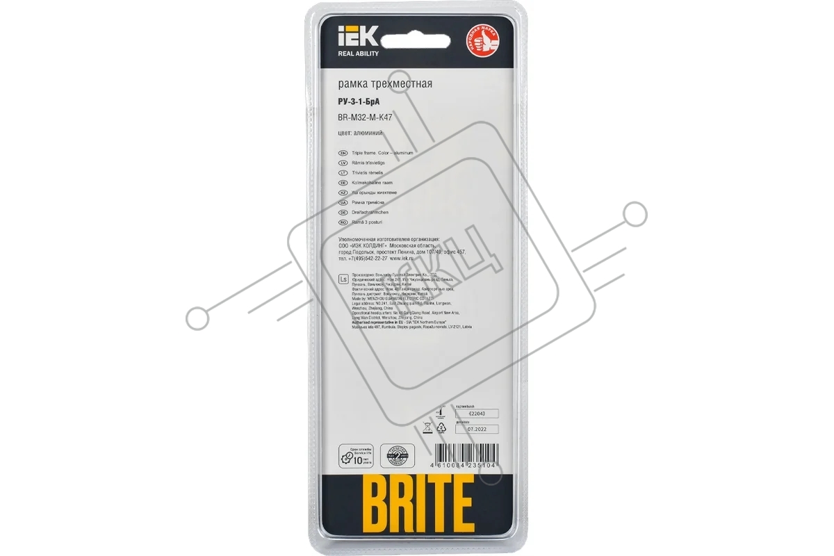 Рамка 3 -местная IEK BRITE РУ-3-1-БрА (BR-M32-M-K47) металл алюминий
