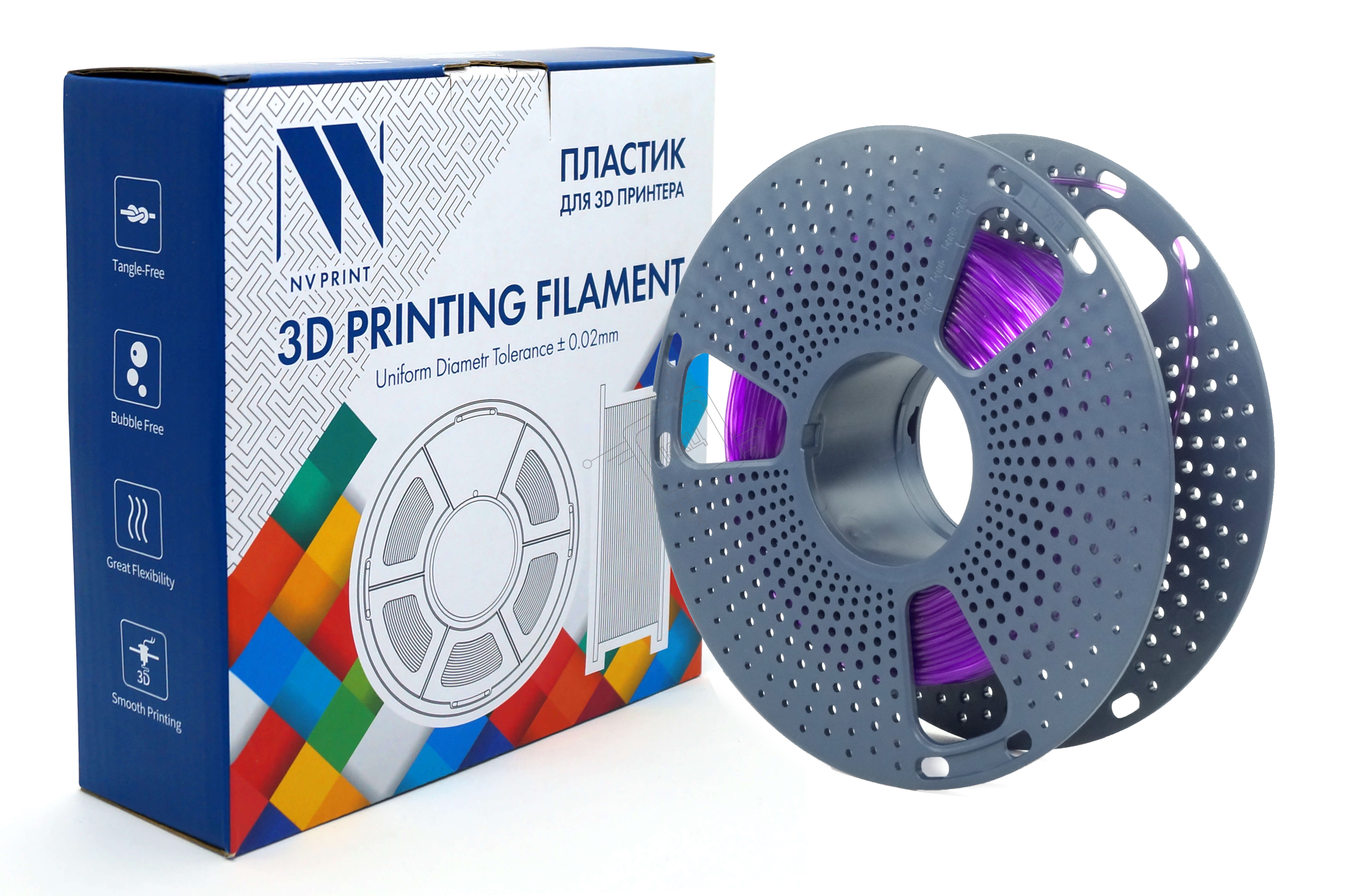 Филамент NVPRINT TPU Trans. Purple для 3D печати диаметр 1.75мм длина 165 метров масса 0,5 кг