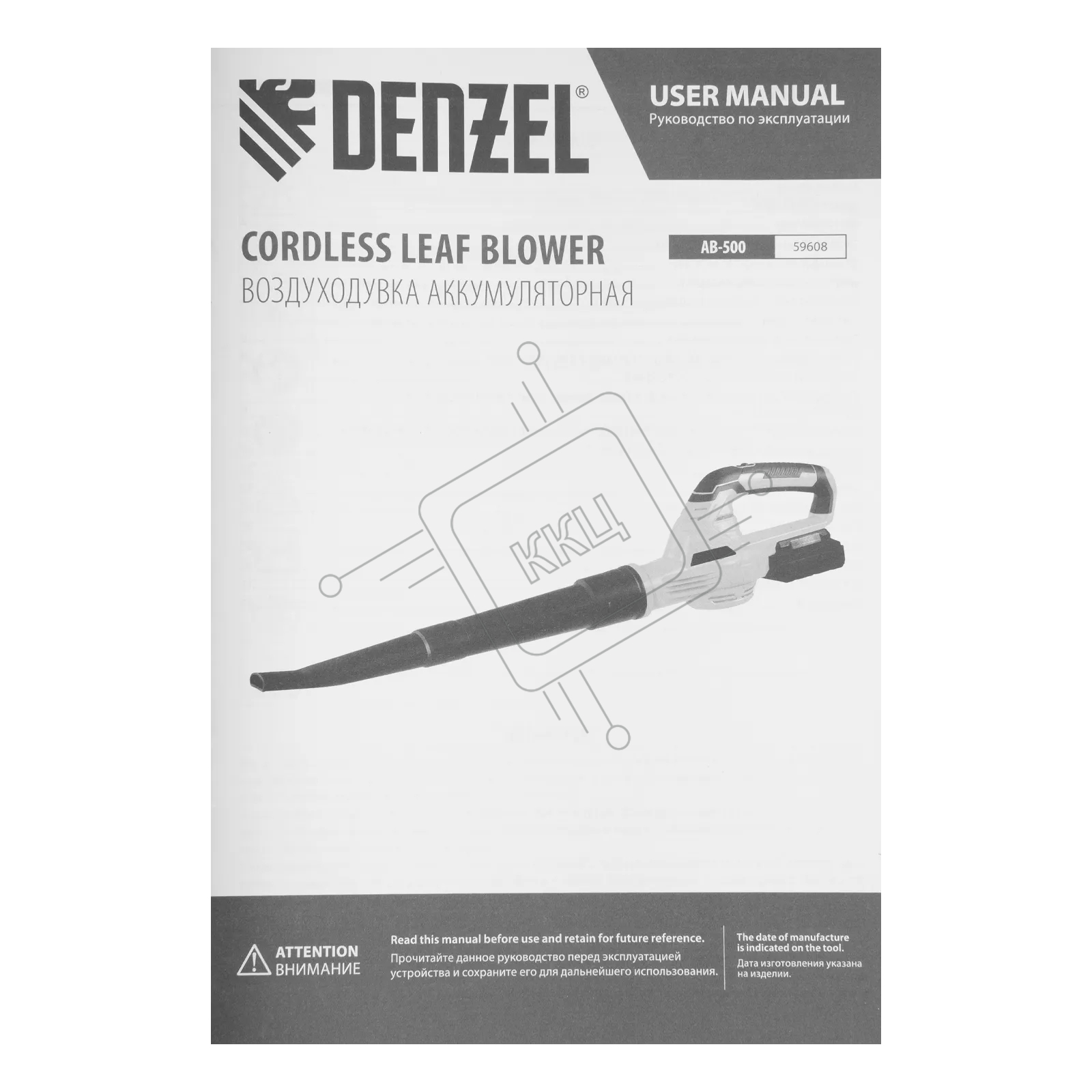 Воздуходувка аккумуляторная Denzel AB-500, 60 м/с, 500 м3/ч, Li-Ion, 20 В