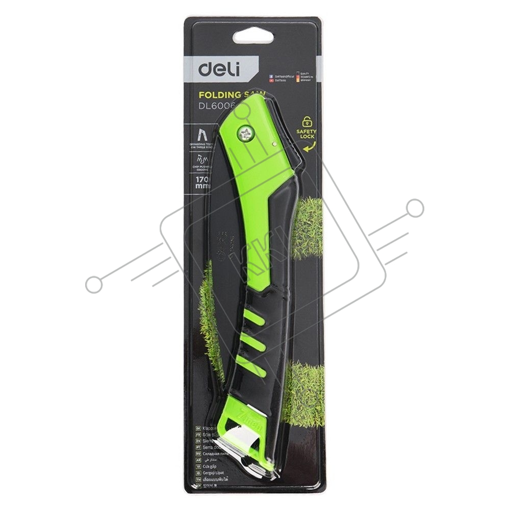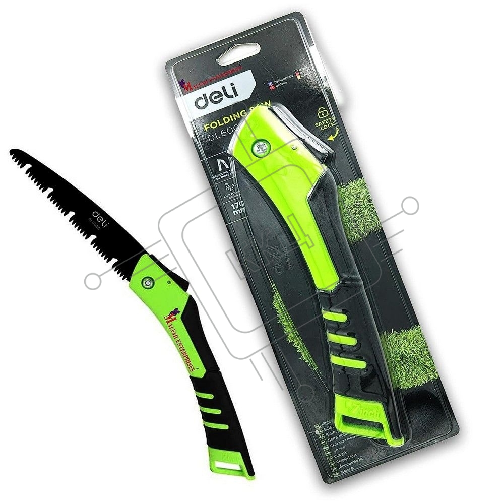 Садовая пила складная Deli DL6006 180мм, сталь 65MN, шаг зубьев 7 TPI, обрезиненая ручка, шлифовка зубов с 3-х сторон, двухрядное распределение кромок