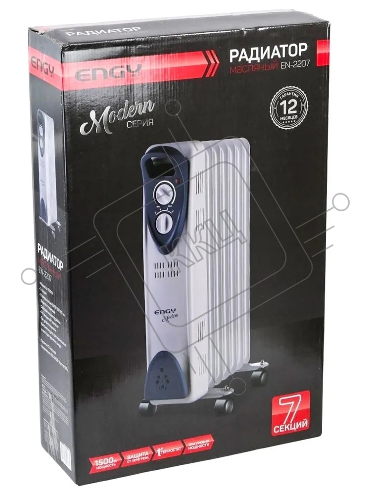 Масляный обогреватель Engy EN-2207 Modern (7 секций) белый, 1500 Вт, 15 м2, термостат