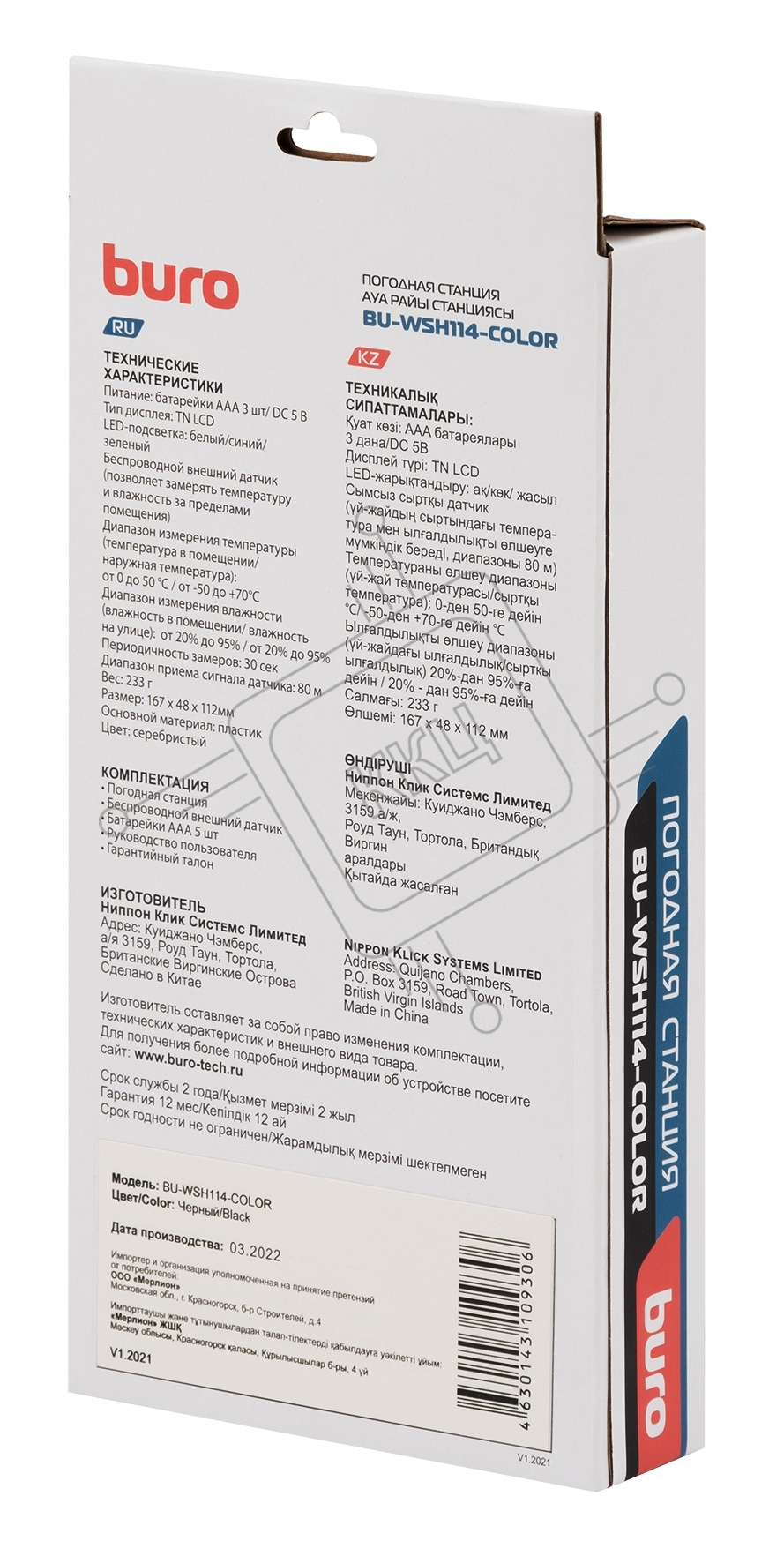 Погодная станция Buro BU-WSH114-COLOR черный