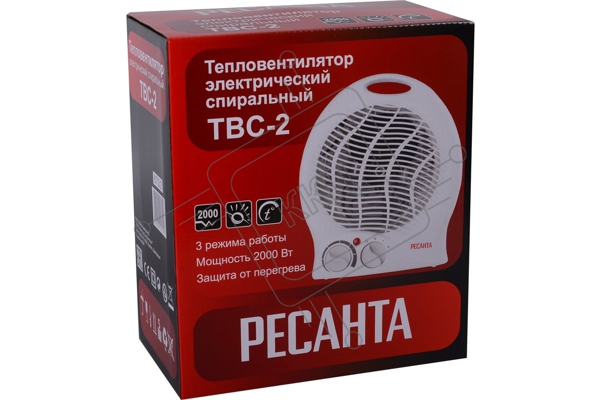 Тепловентилятор Ресанта ТВС-2 [67/2/2] спиральный,/1000/2000 Вт, защита от перегрева
