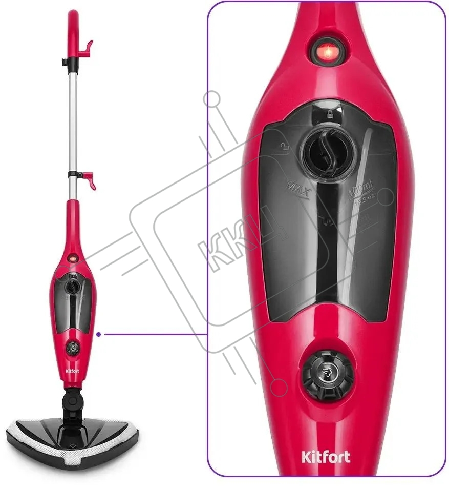 Швабра паровая Kitfort КТ-3928 малиновый/черный