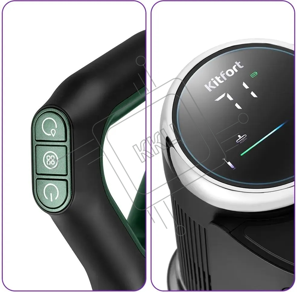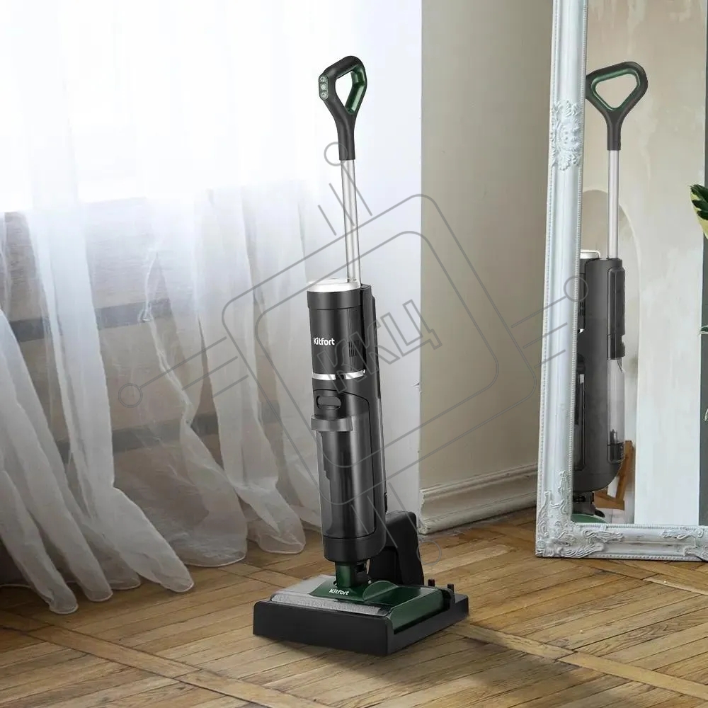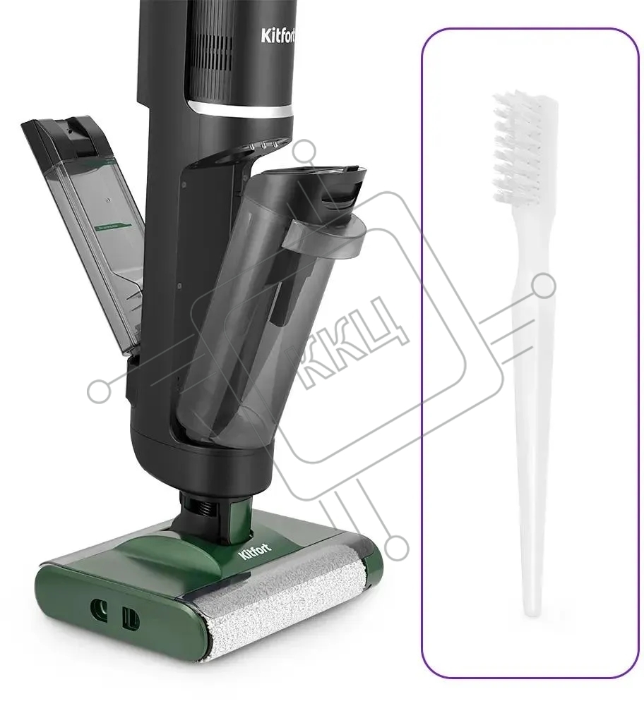 Пылесос вертикальный моющий Kitfort КТ-5259 черный/зеленый, питание от аккумулятора, 200 Вт, уборка влажная/сухая, пылесборник 0.8 л, работа от АКБ max 30 мин