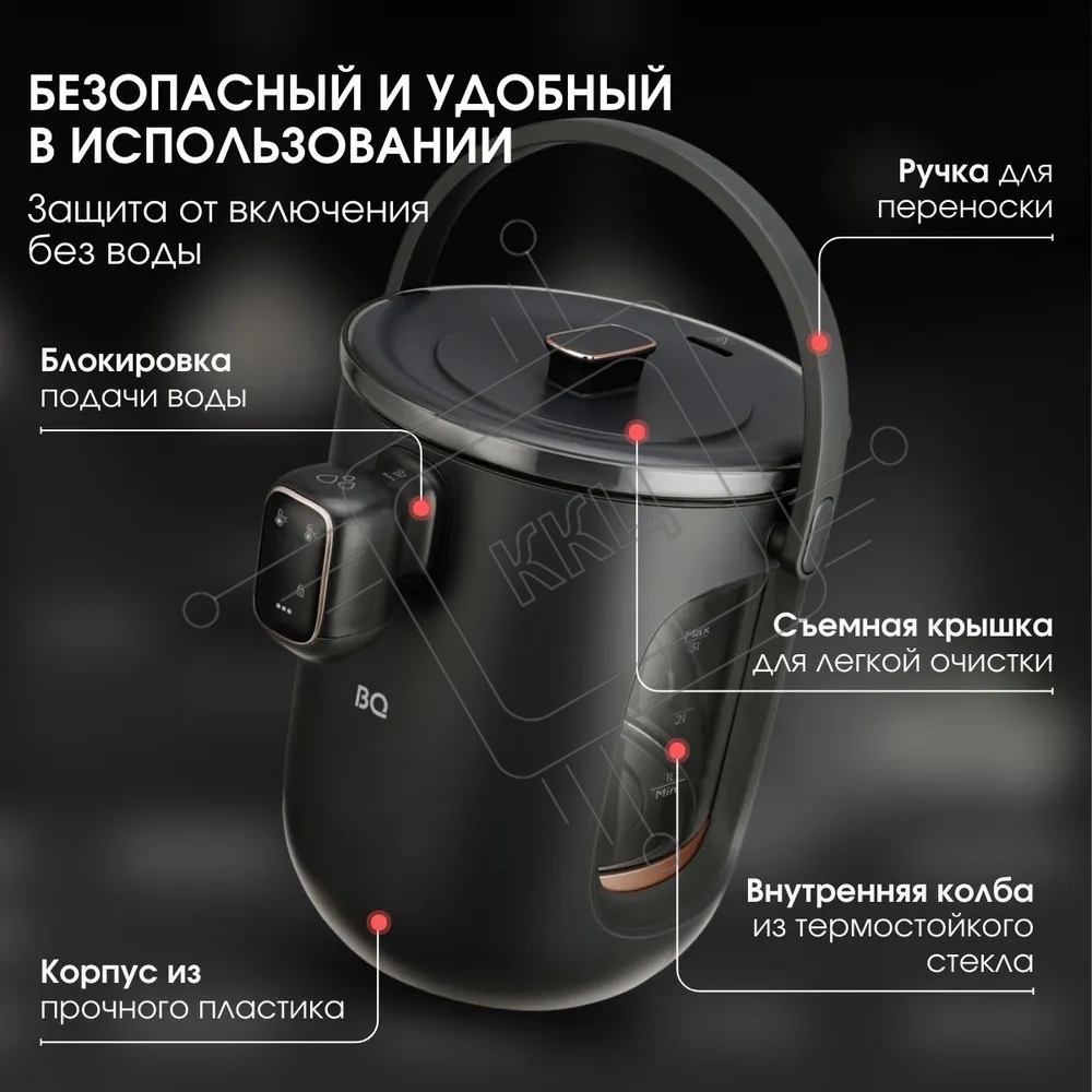 Термопот BQ TP314 черный, Мощность 1450 Вт, Объем 3 л, 6 температурных режимов, Электрическая помпа