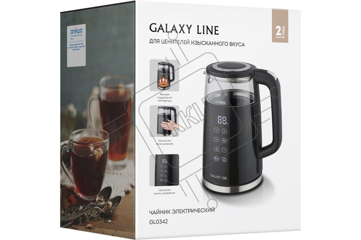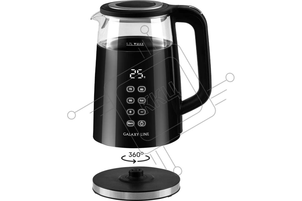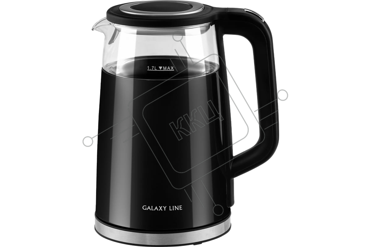 Чайник электрический Galaxy Line GL 0342, черный, стекло, 2200 Вт, 1,7 л, LED-дисплей, сенсорная панель управления