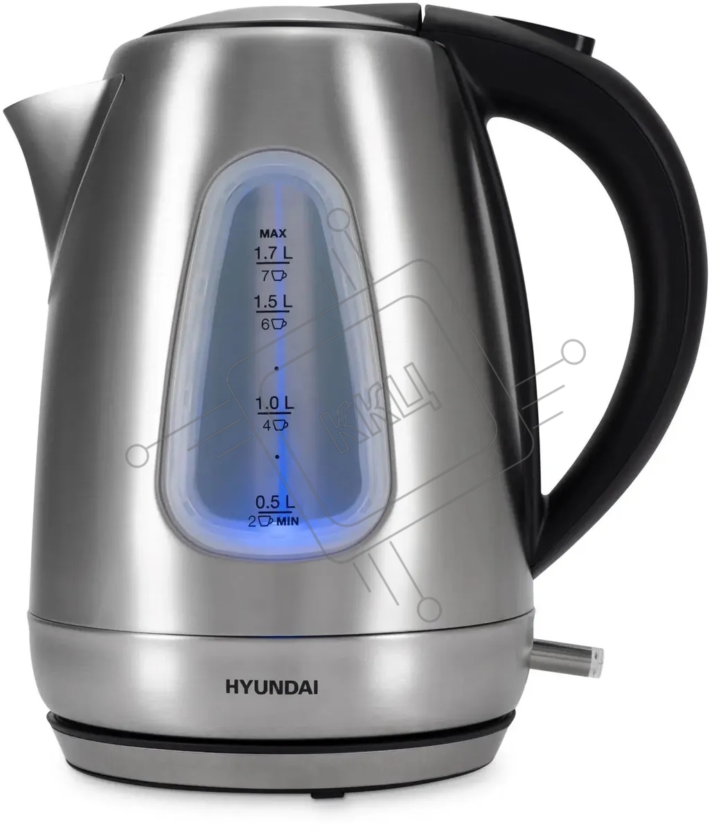 Чайник электрический Hyundai HYK-S7407 1.7л. 2200Вт серебристый матовый/черный (корпус: нержавеющая сталь)