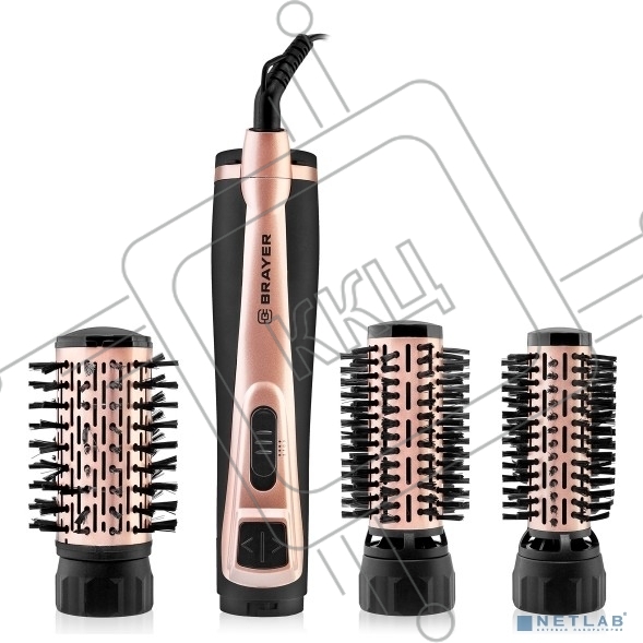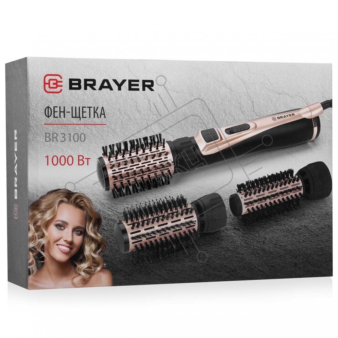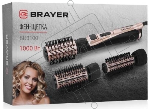 Фен-щетка BRAYER BR3100, 1000Вт, 3 насадки: 35, 40, 50 мм, 2 скорости, шнур 1,8 м