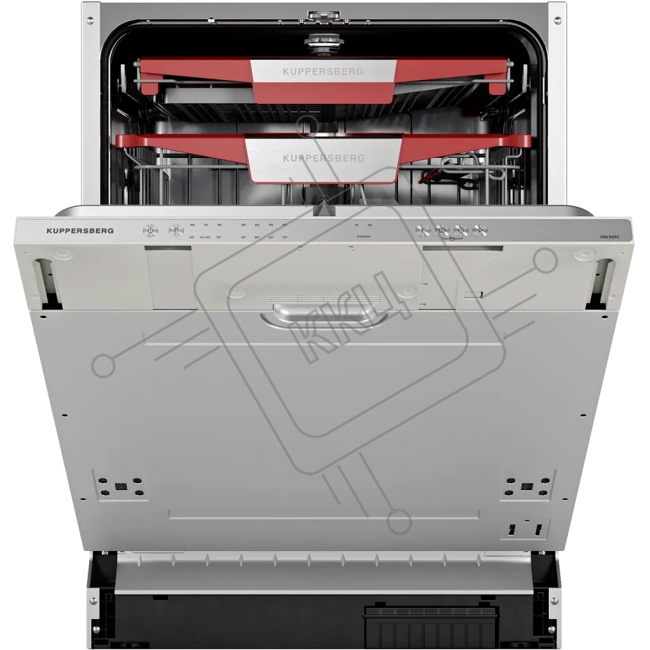 Встраиваемая посудомоечная машина Kuppersberg GIM 6092, High-Tech, 60 см, 15 комплектов, 7 программ, 3 корзины, конденсационная сушка, луч на полу, полная защита от протечек, индикатор отсутствия соли и ополаскивателя, отображение времени мытья, кнопочное