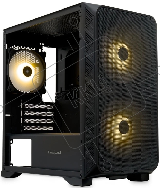Компьютерный корпус без блока питания HSPD M321, Mesh Mini-tower, черный, slide TG, 0.45 SPCC, 2x140мм ARGb+1x120мм ARGb mATX, mITX 160/340/184мм 2x2.5", 2x3.5", 4xPCI 2xUSB-A 3.0, 1xUSB-A 1.0 390x200x385мм