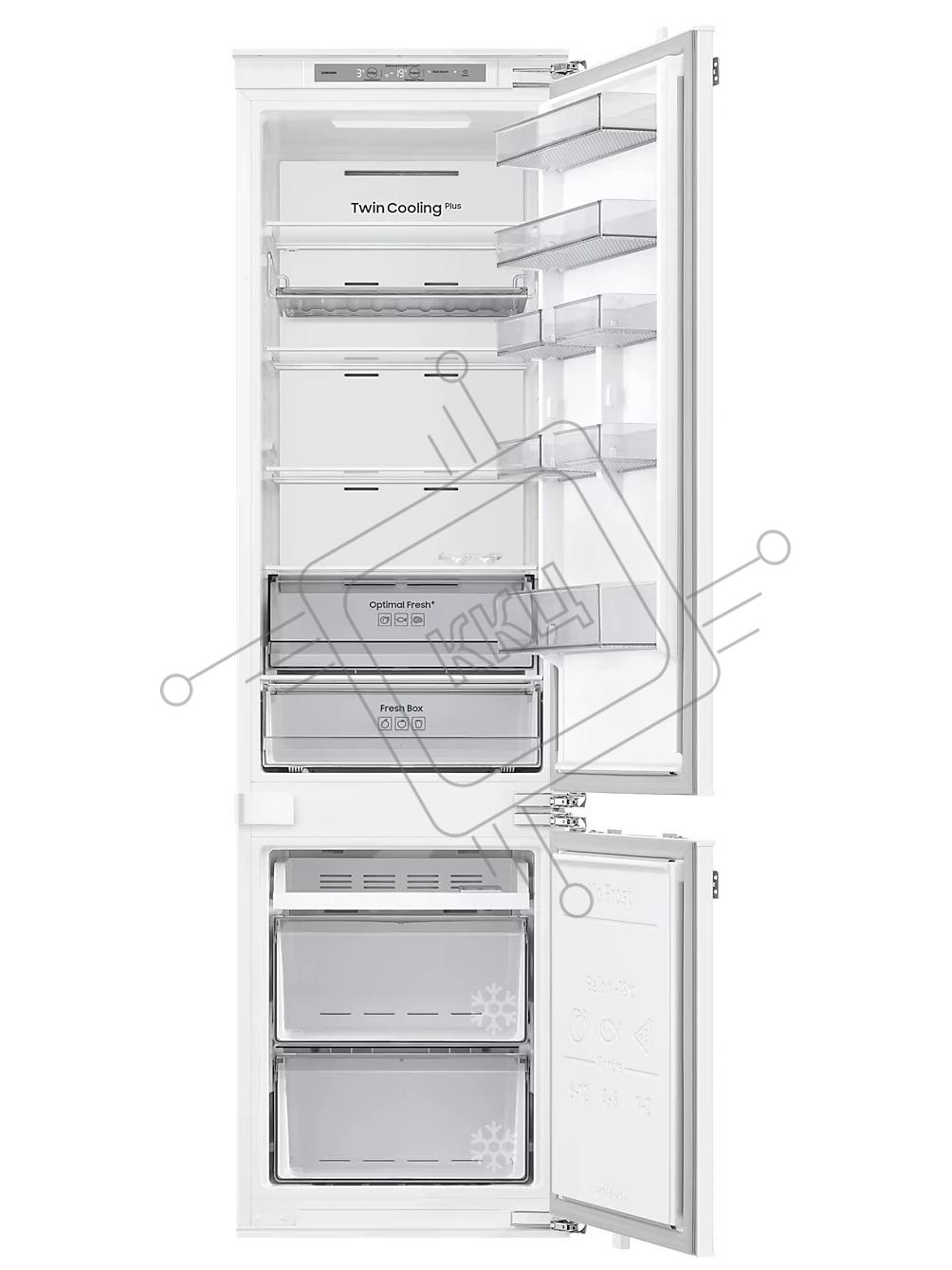 Встраиваемый холодильник Samsung BRB70F30AEF0EO белый двухкамерный 224/74л морозилка снизу No Frost
