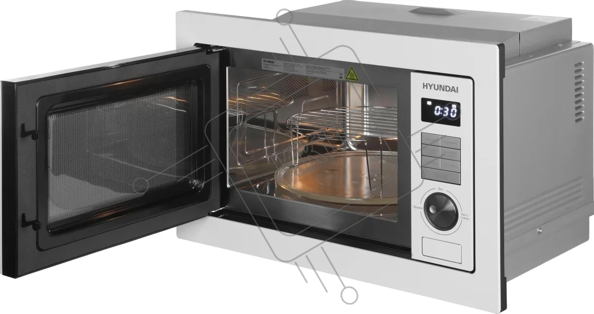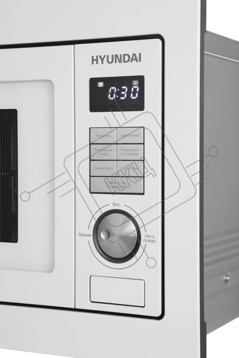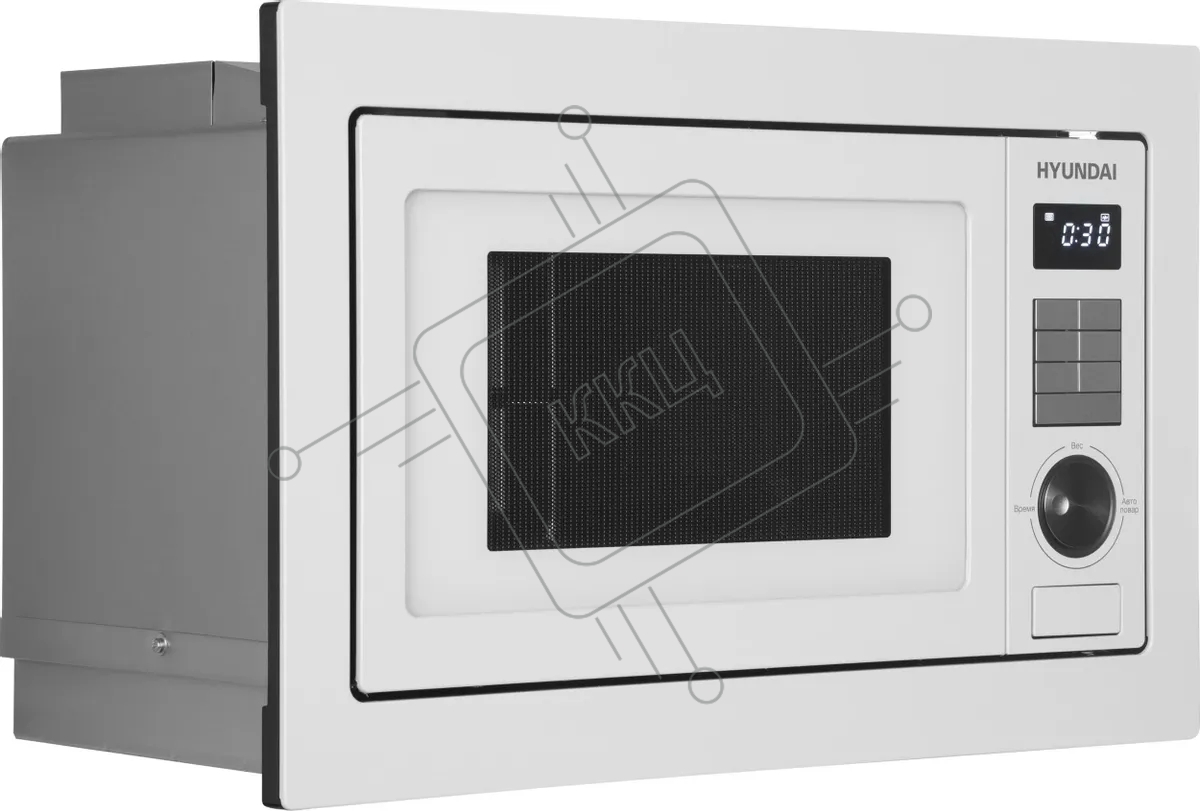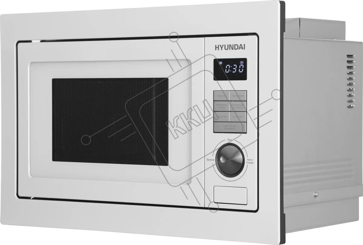 Микроволновая печь встраиваемая Hyundai HBW 2544 WG белый, 25 л, 900 Вт, переключатели - кнопки/поворотный механизм