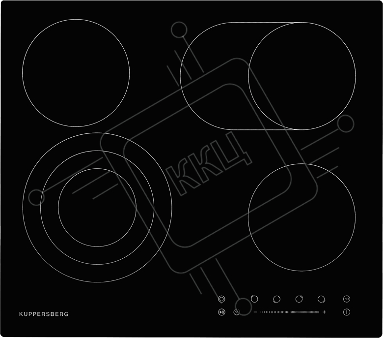 Электрическая варочная поверхность Kuppersberg ECS 623 / ширина 60 см, 4 зоны ускоренного нагрева HI-Light, 1 зона с тройным расширением, 1 зона с двойным расширением, сенсорное управление+слайдер, 5 цифровых дисплея, 9 уровней мощности, автоотключение, з