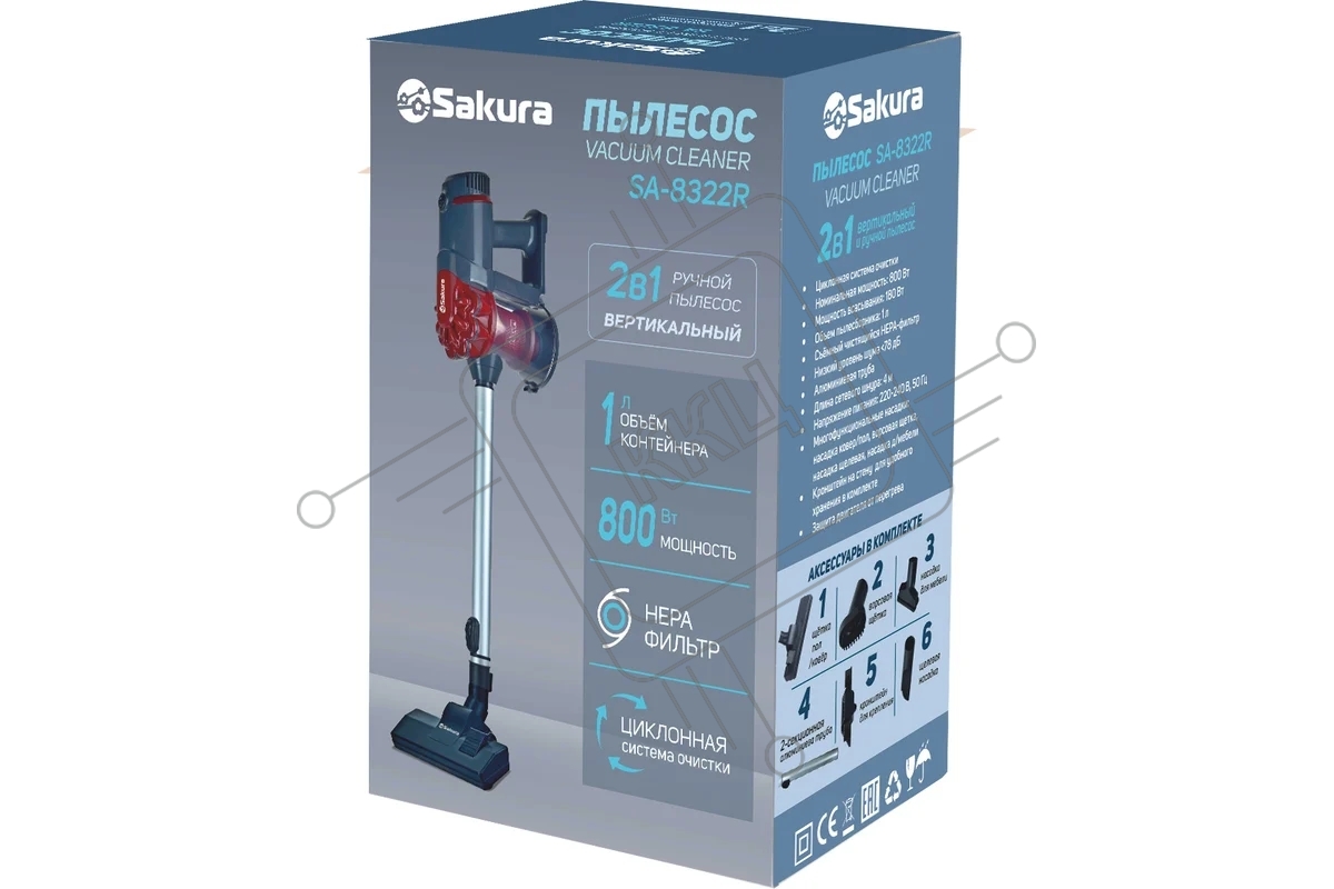 Пылесос вертикальный Sakura SA-8322R серый/красный, питание от сети, 180 Вт, уборка сухая, пылесборник 1 л