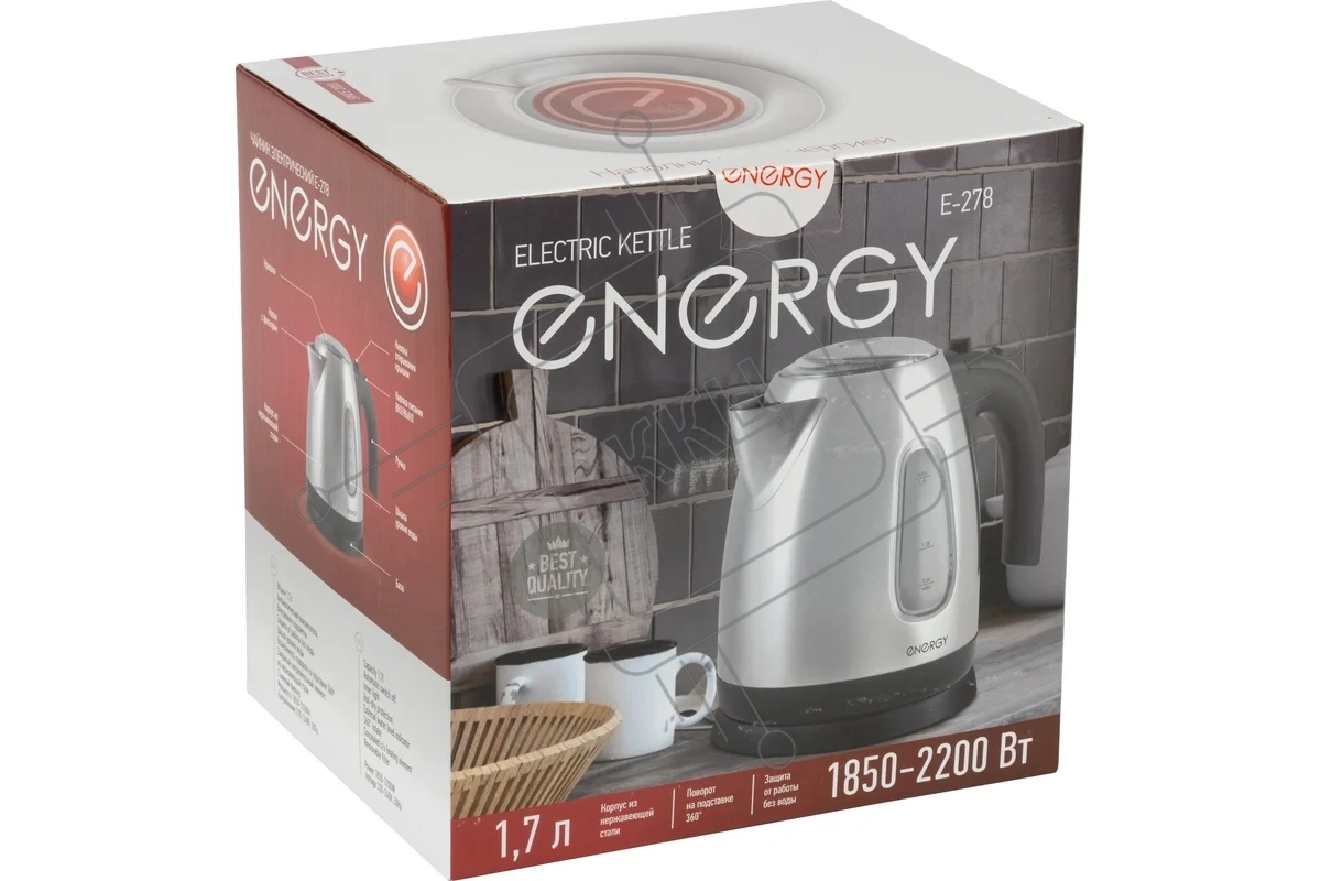 Чайник электрический Energy E-278 из нержавеющей стали,1.7 л, 1850-2200 Вт (в уп. 8 шт)