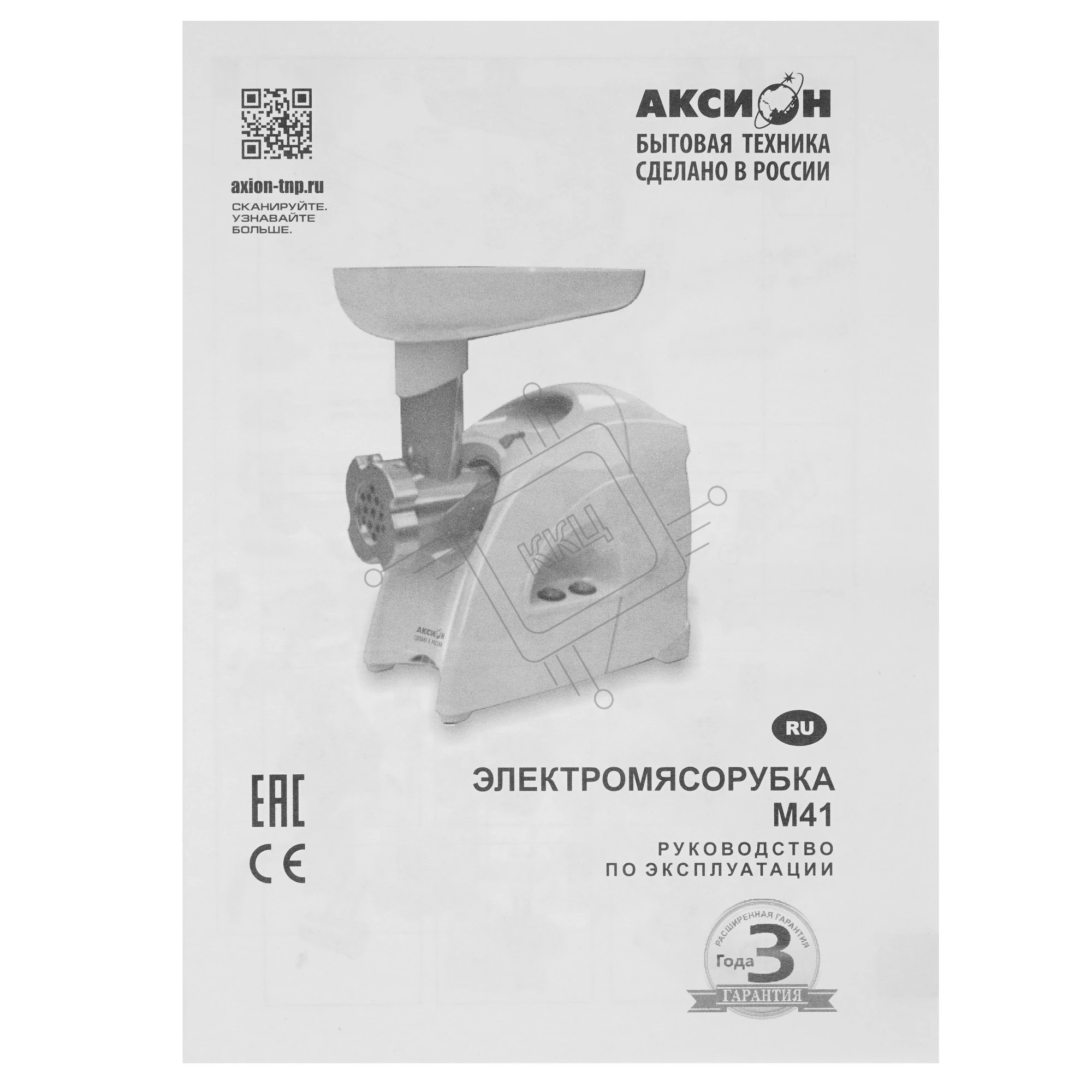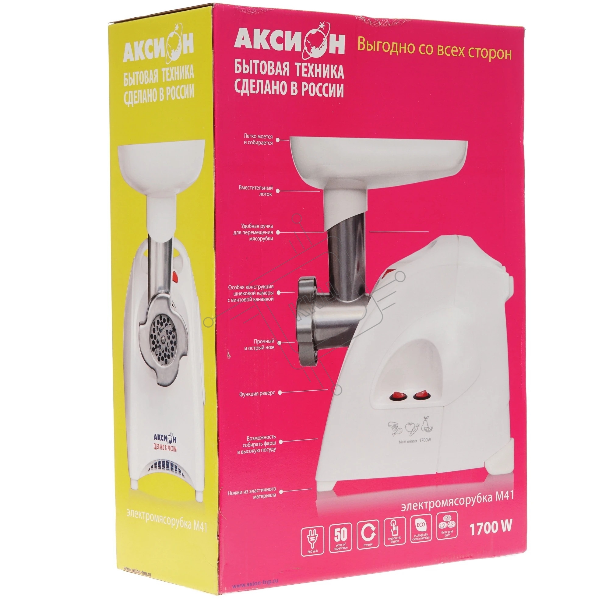 Мясорубка электрическая Аксион М41.02 белый, 1700 Вт, 2.0 кг/мин, реверс, защита от перегрузки, насадки - 8