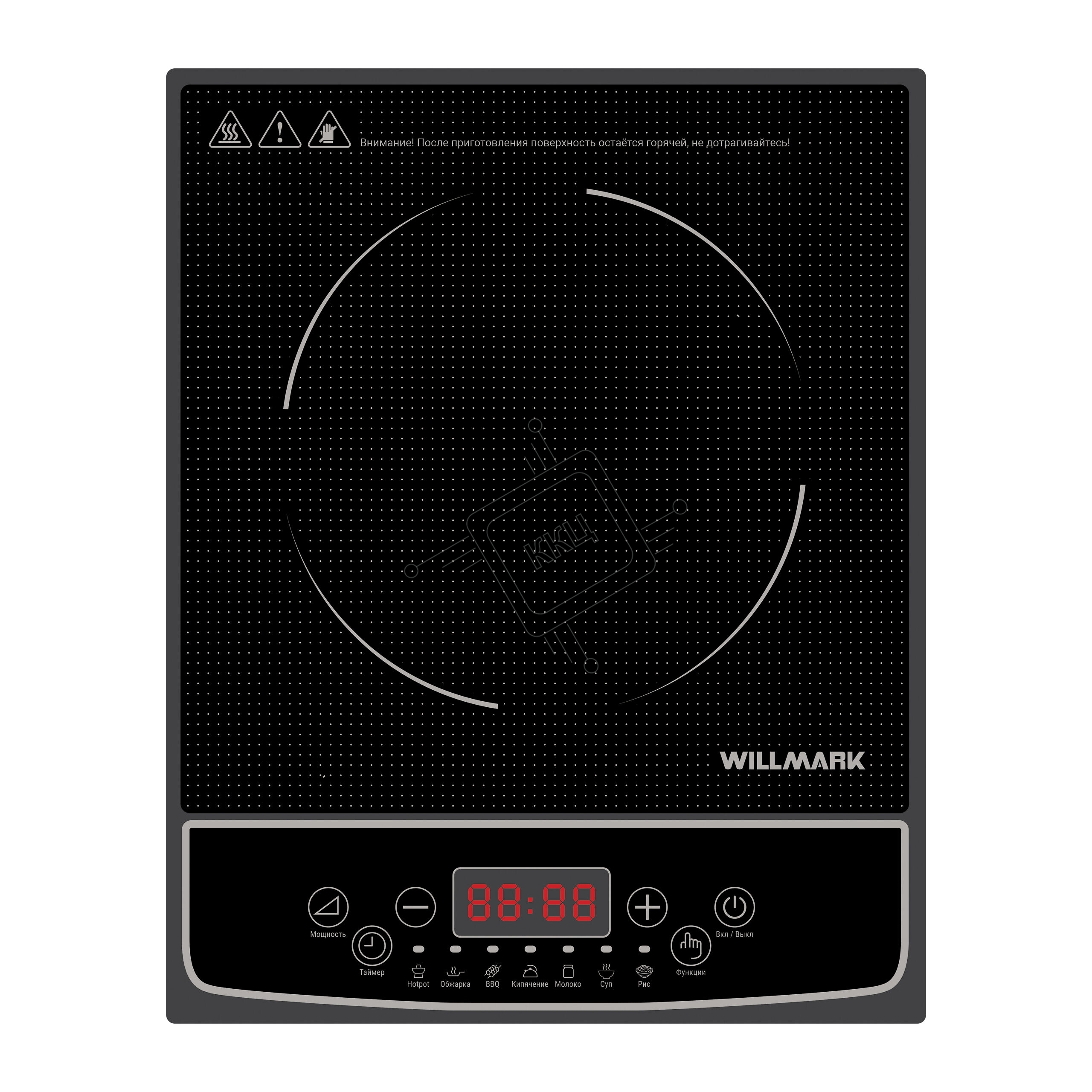 Плитка индукционная Willmark WIP-748BC ( 2000Вт, 1 конф., 10 уровней темп., 7 программ, LED дисплей)