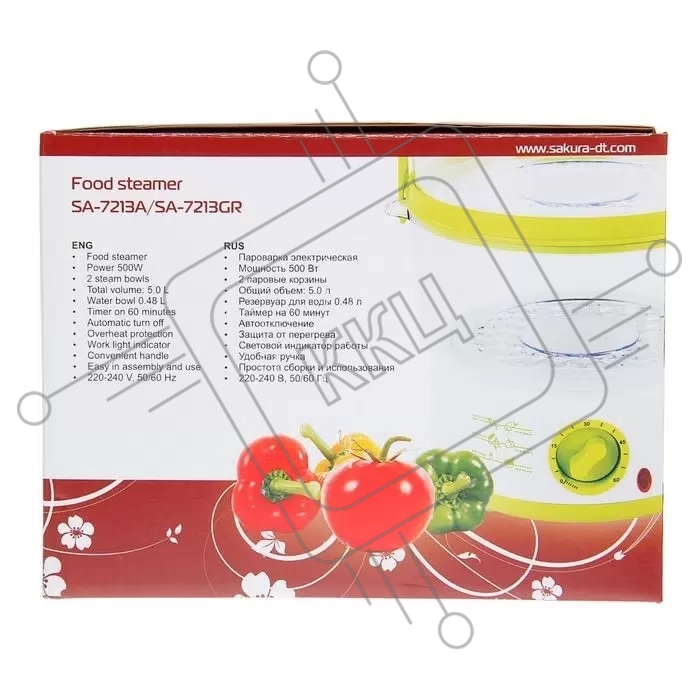 Пароварка электрическая Sakura SA-7213GR 2ч (5,0л) 500Вт бел/зел