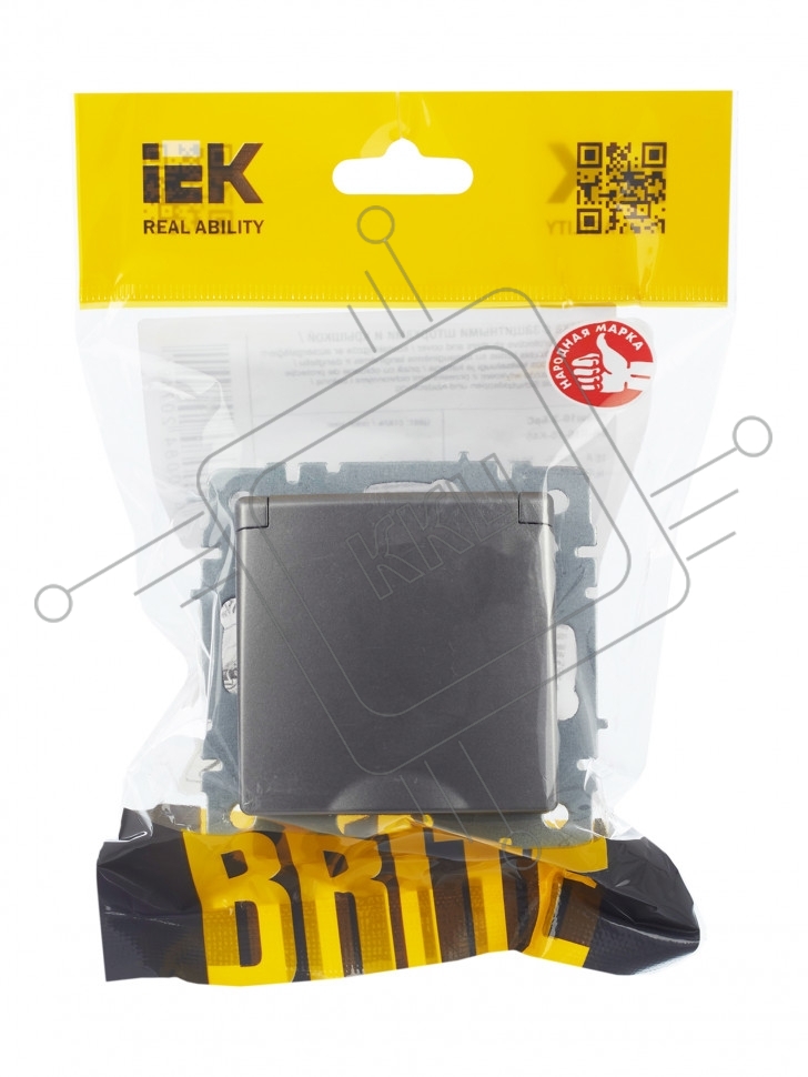 Розетка 1-местная IEK BRITE РСбш10-3-БрС с заземлением, с защитными шторками и крышкой, 16А IP20, сталь