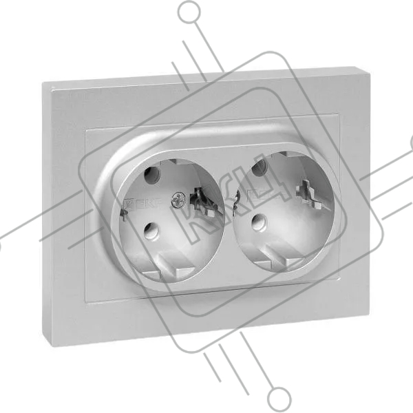 Розетка 2-м EKF UP1-SOA-210 СП Эпика 16А с заземл. без защ. шторок с рамкой механизм алюм.