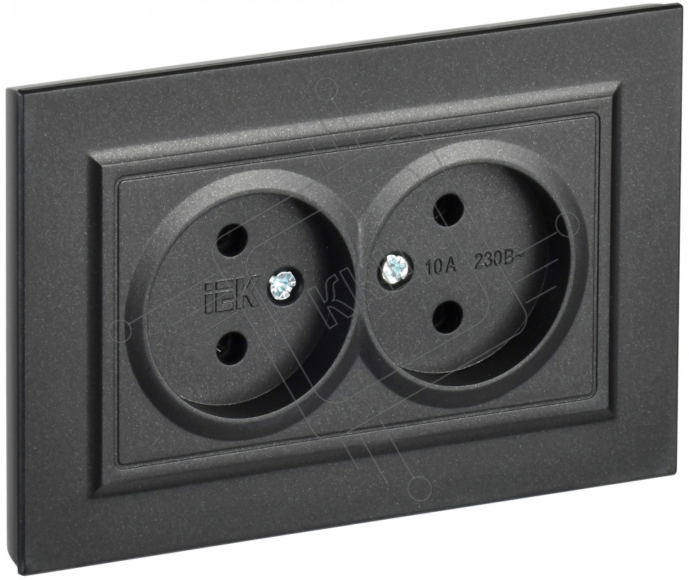 Розетка 2-местная IEK BRITE РС12-2-БрЧ (BR-R20-10-K02-F) 10А, в сборе, без заземления без защитных шторок, черный