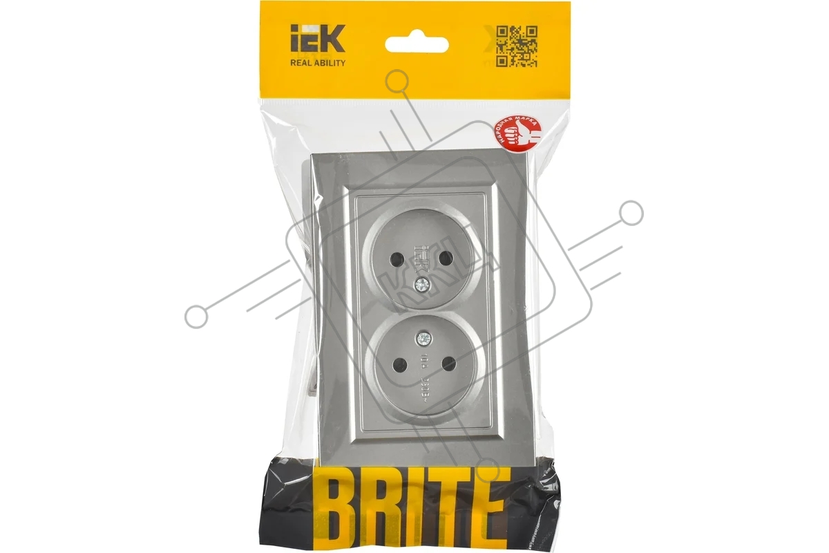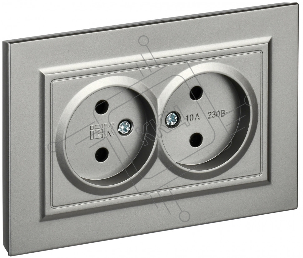 Розетка 2-местная IEK BRITE РС12-2-БрС (BR-R20-10-K46-F) 10А в сборе, без заземления, без защитных шторок, сталь