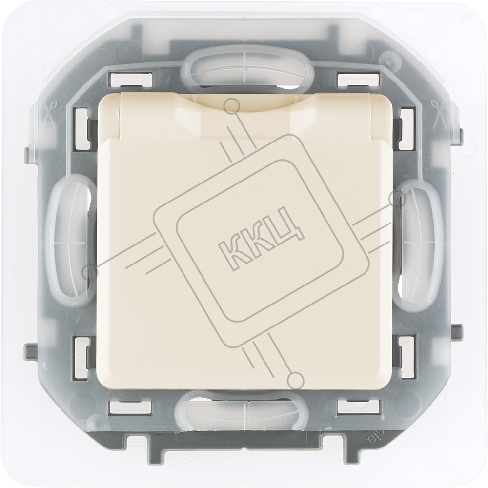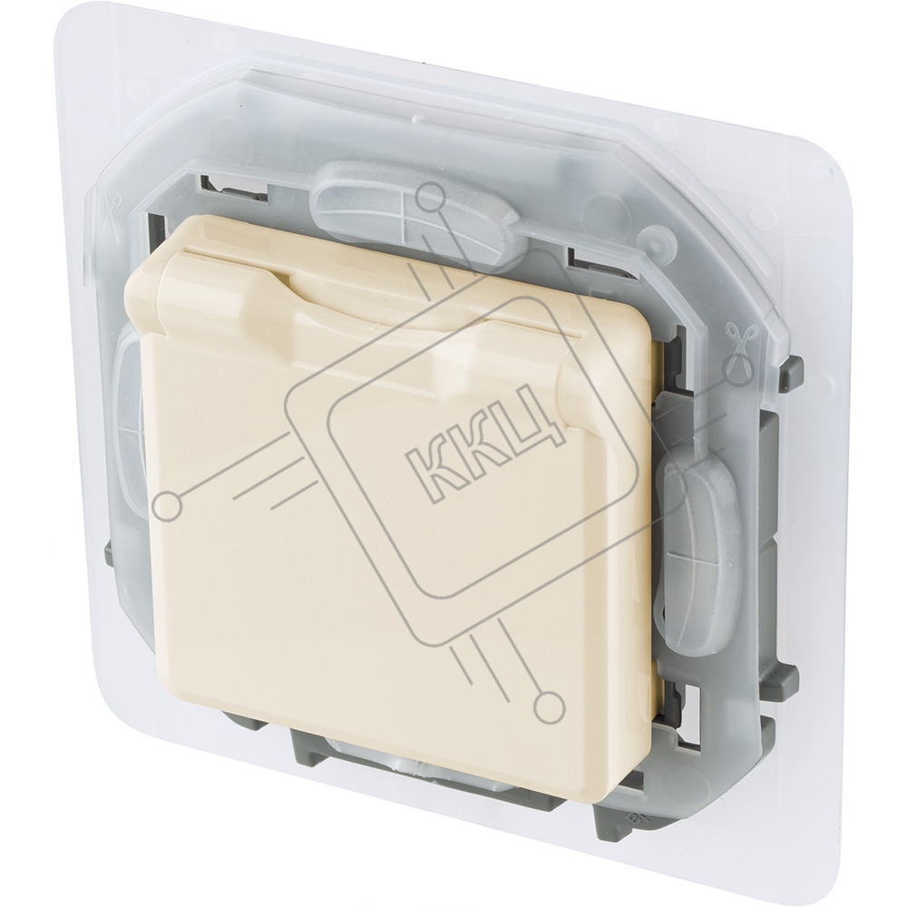 Розетка 2К+З IP44 с крышкой и шторками немецкий стандарт 16А 250В слоновая кость