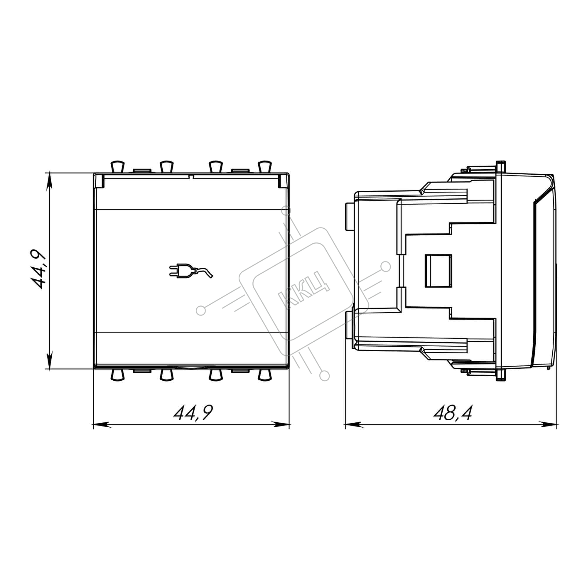 Розетка с крышкой модульная DKC 4400012 2P+E, с з/ш, "Avanti", "Белое облако", 2 модуля
