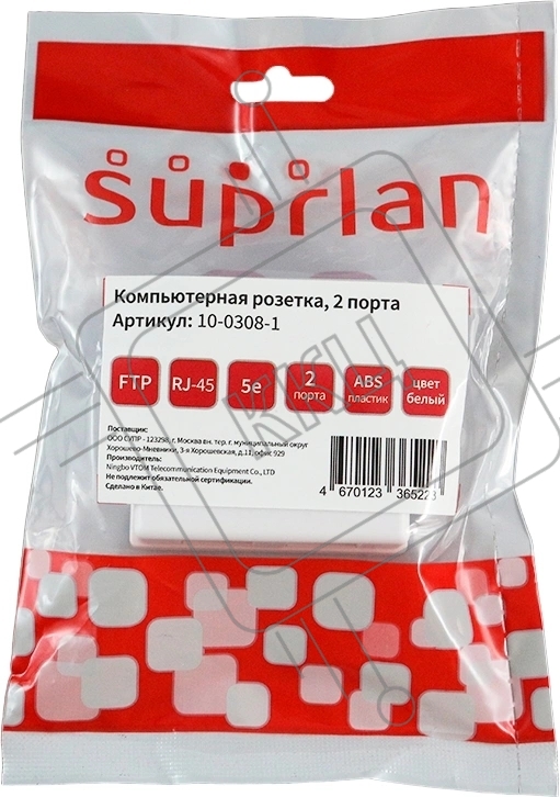 Розетка Suprlan 10-0308-1 наклад.RJ45 2 кат.5E FTP бел.