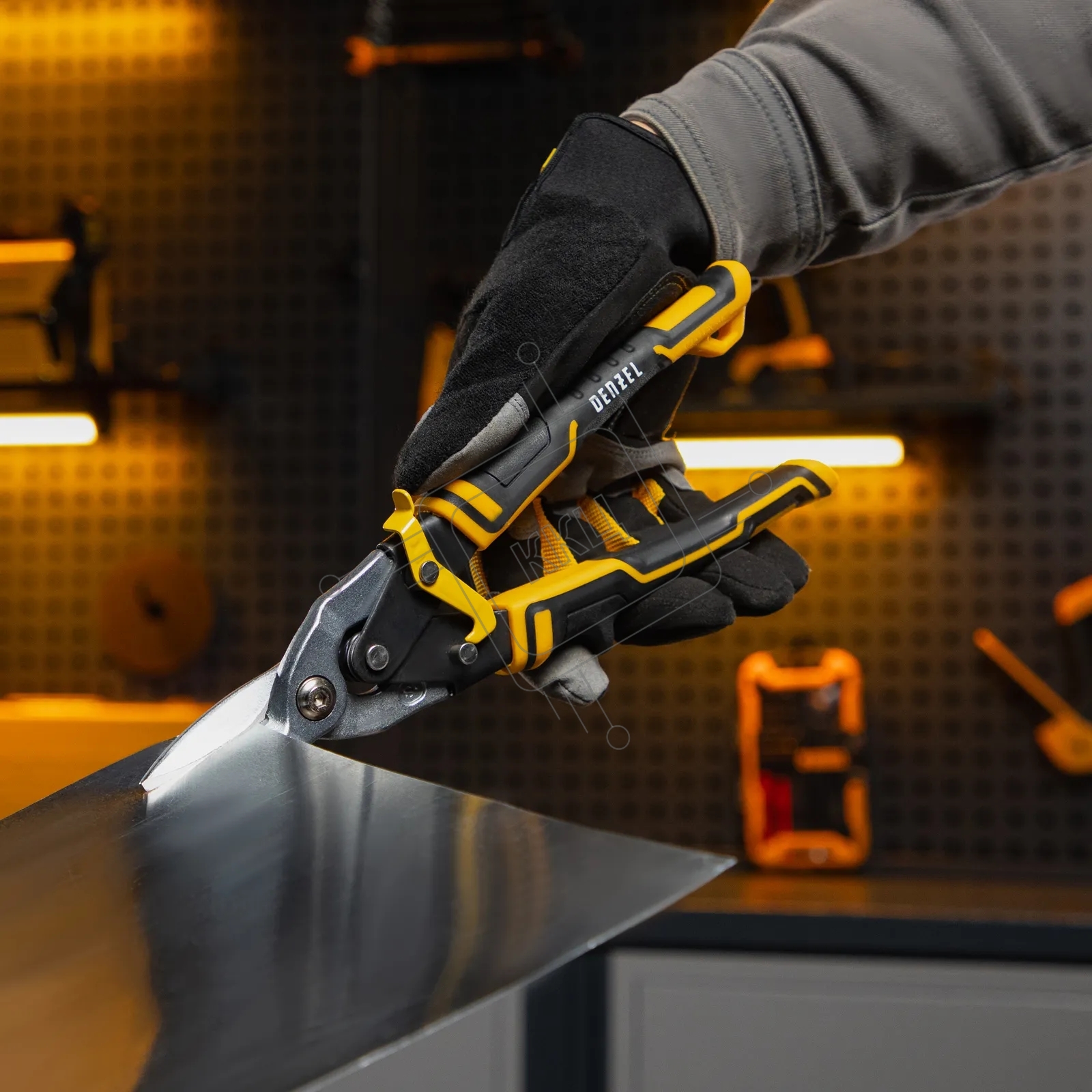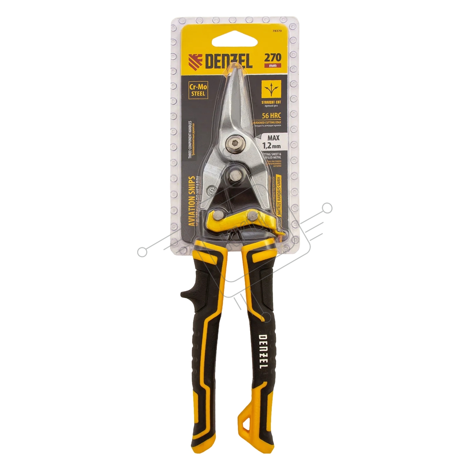 Ножницы по металлу Denzel, 270мм, прямой рез,сталь-CrMo, трехкомп.рук-ки