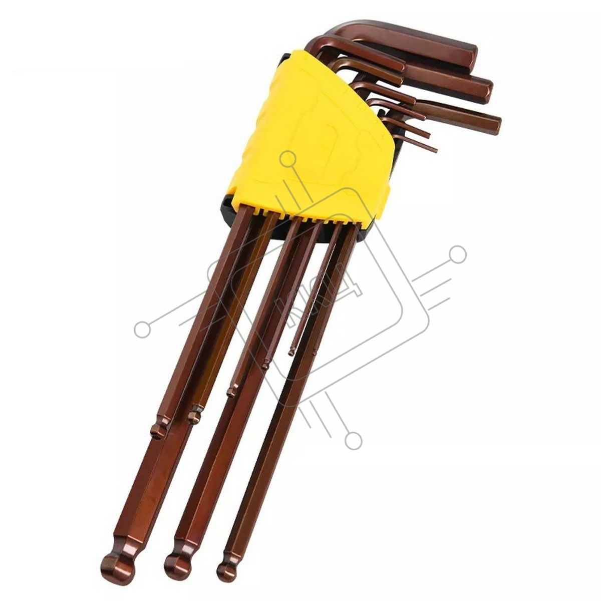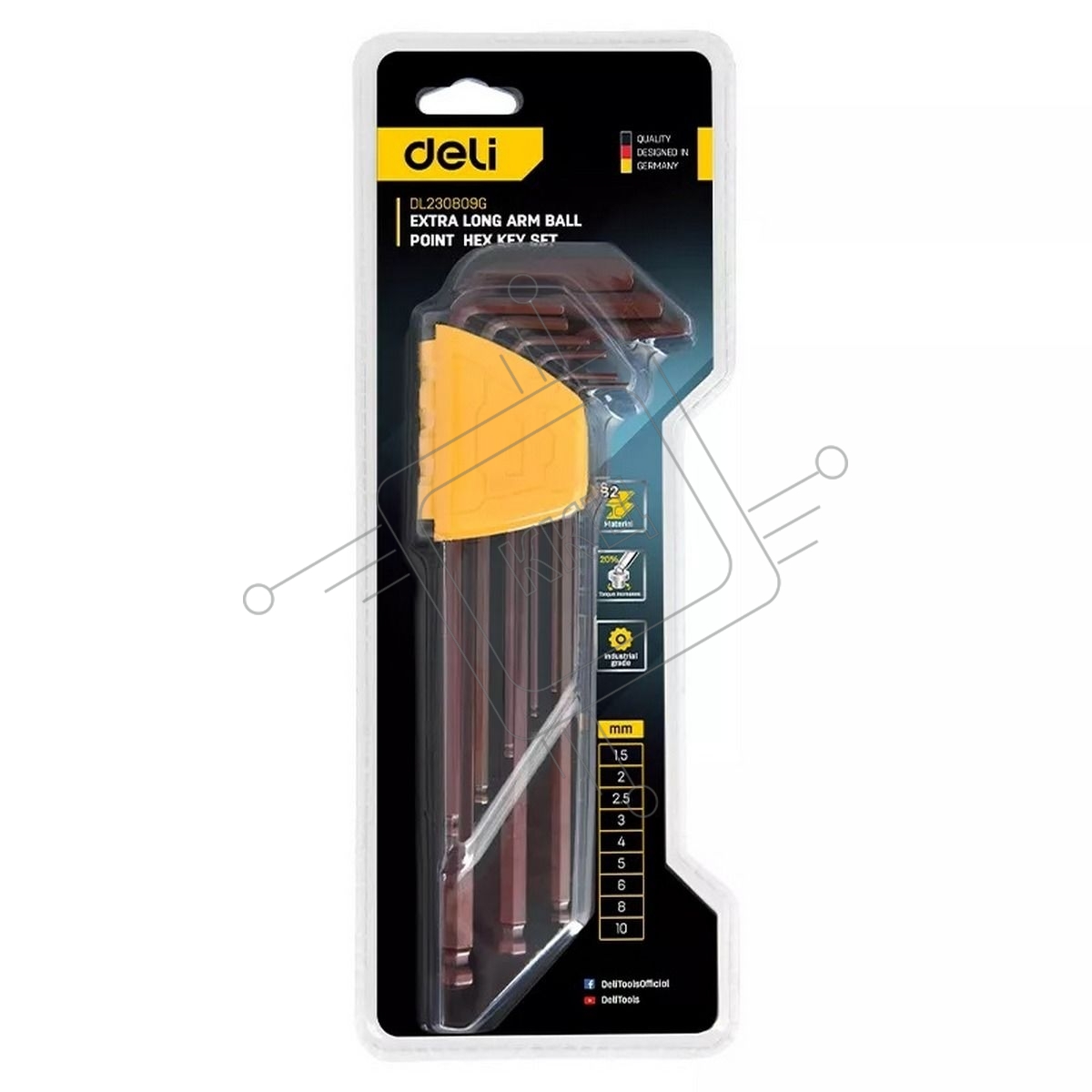 Ключ Deli Набор шестигранных ключей с шаром сверхдлинных Deli DL230809G 9 шт Cr-V, размеры 1,5,2,2,5,3,4,5,6,8,10мм, пластиковый держатель