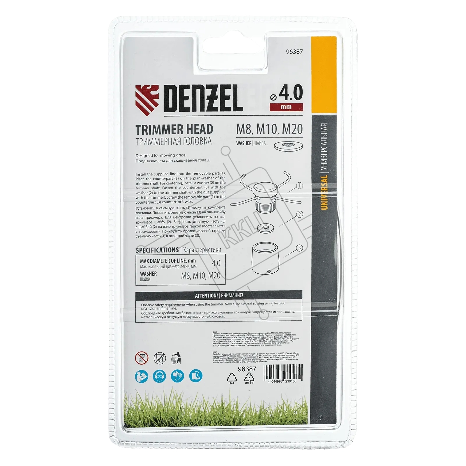 Головка триммерная универсальная Denzel быстрозажимная, шайба М8, М10, М20