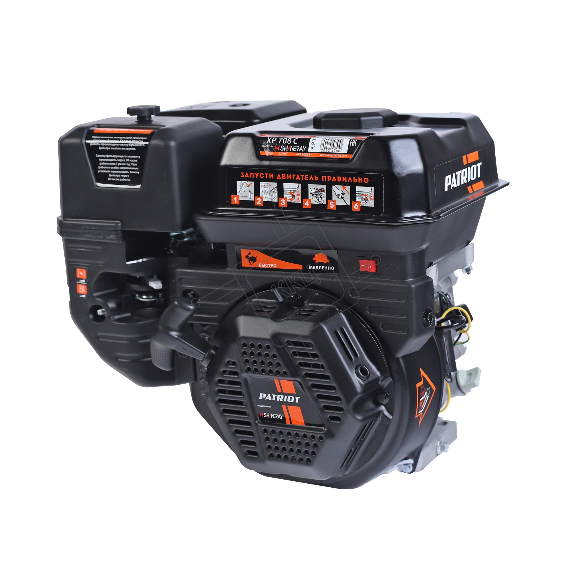 Двигатель PATRIOT XP 708 C, Мощность 7,0 л.с.; 212 см³; 3600об/мин; бак 3,6л.; хвостовик конус; вес 15 кг.
