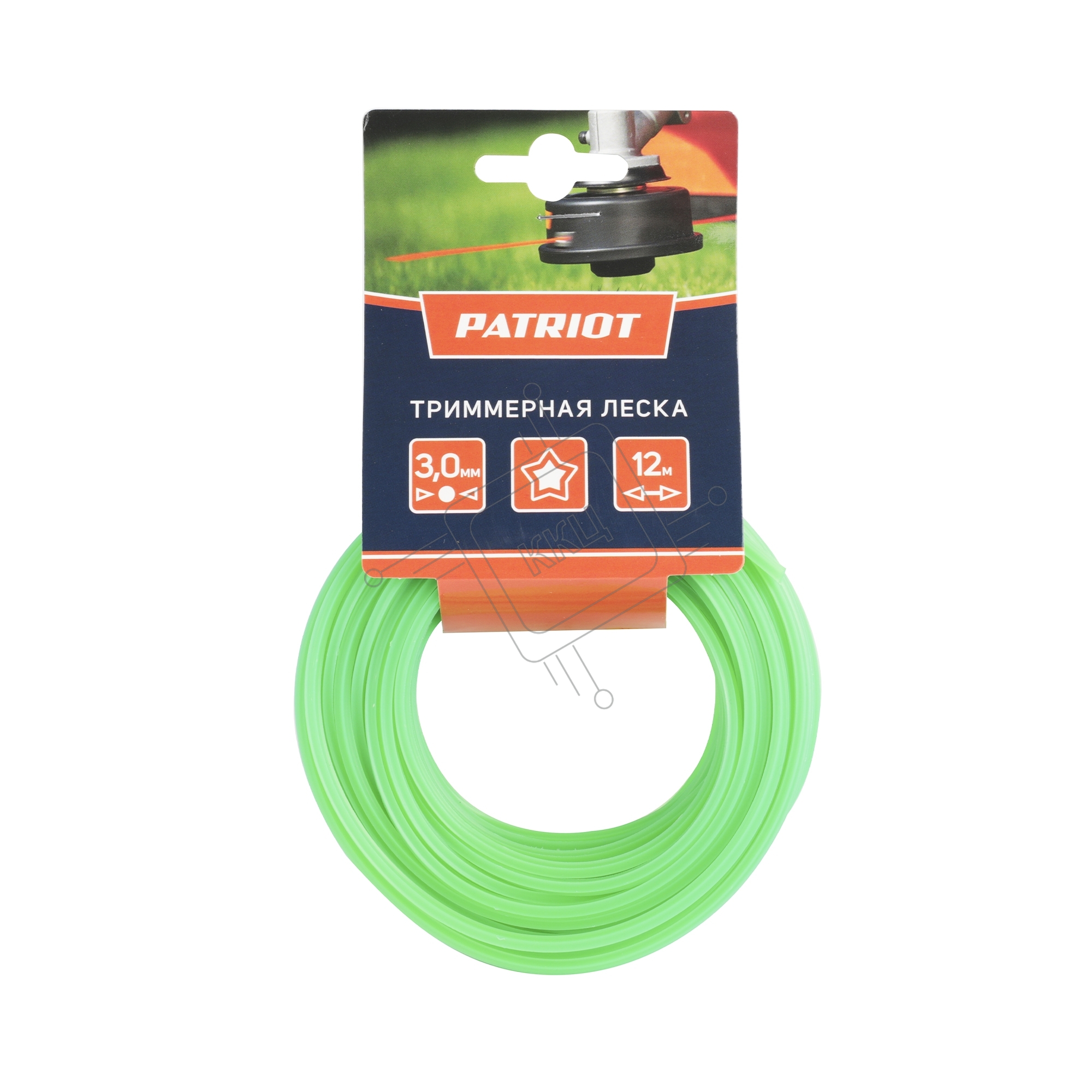 Леска PATRIOT D 3,0 мм L 12 м (звезда, зеленая) 300-12-3, картонный подвес